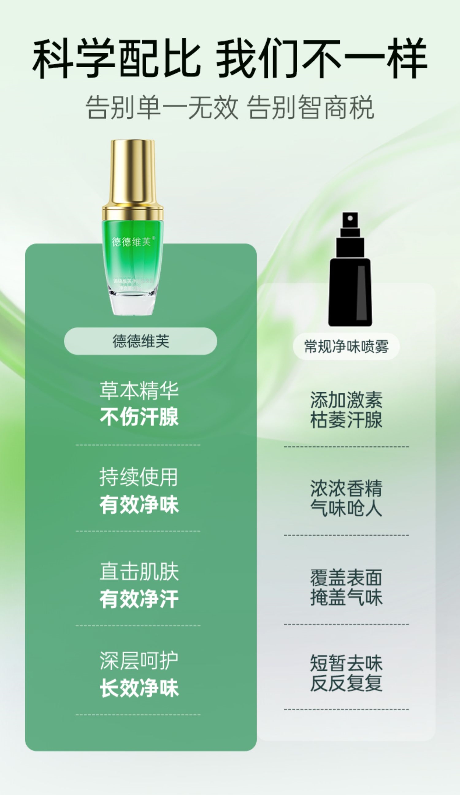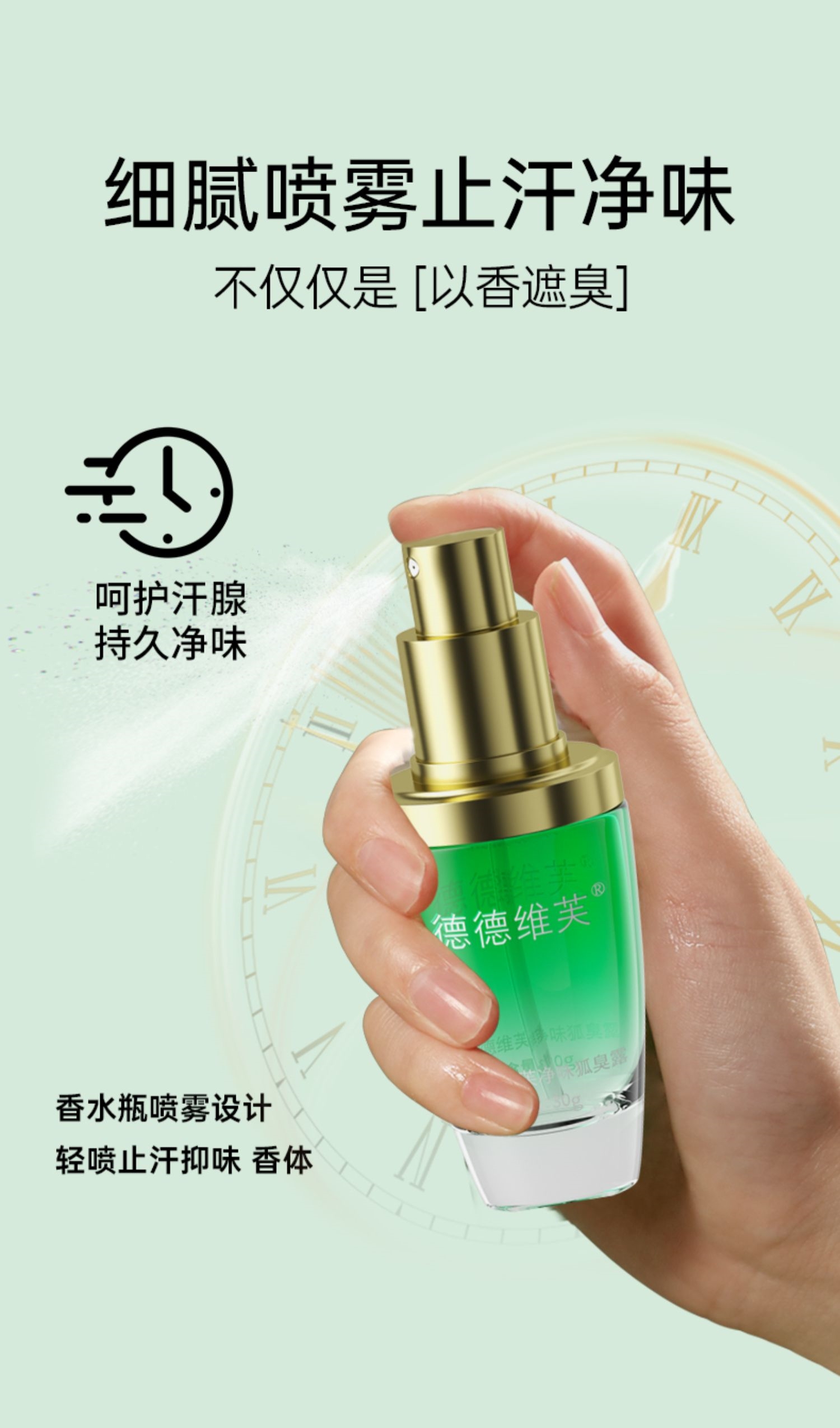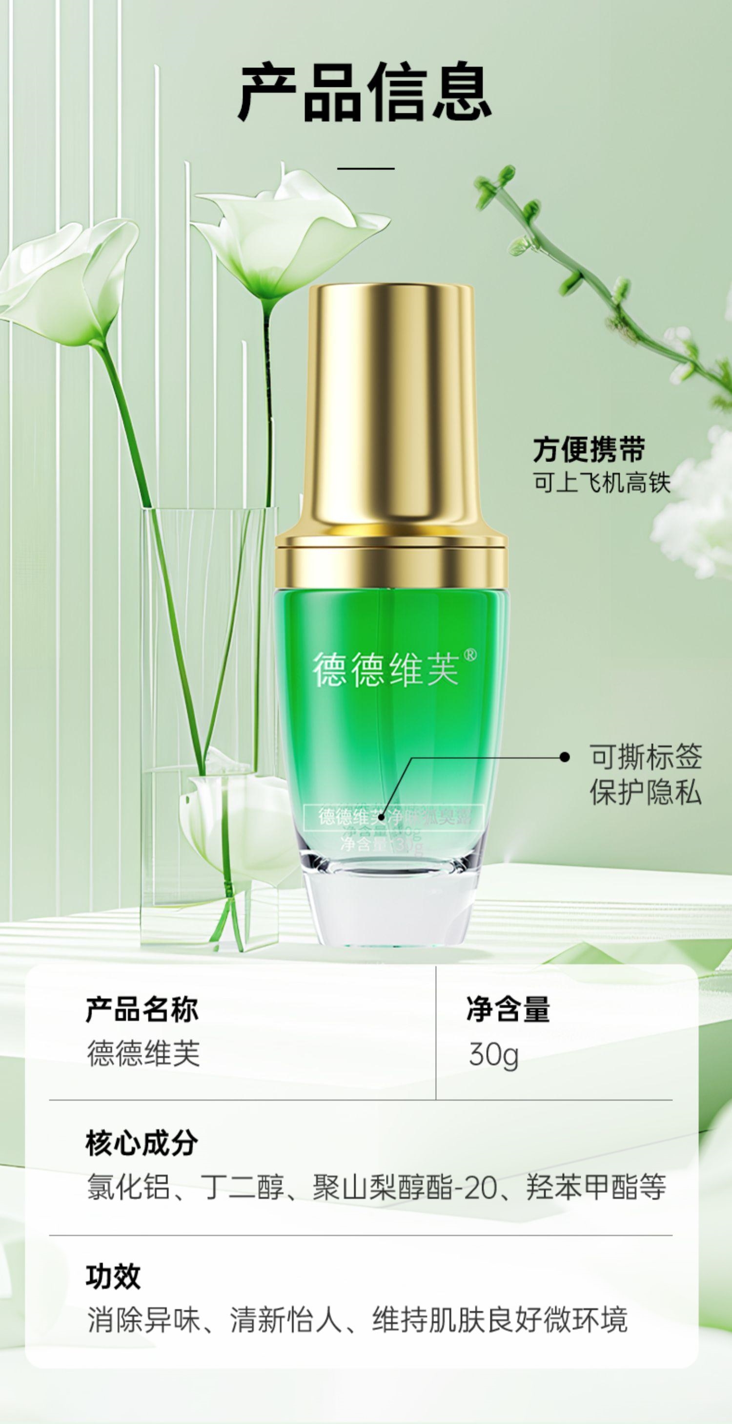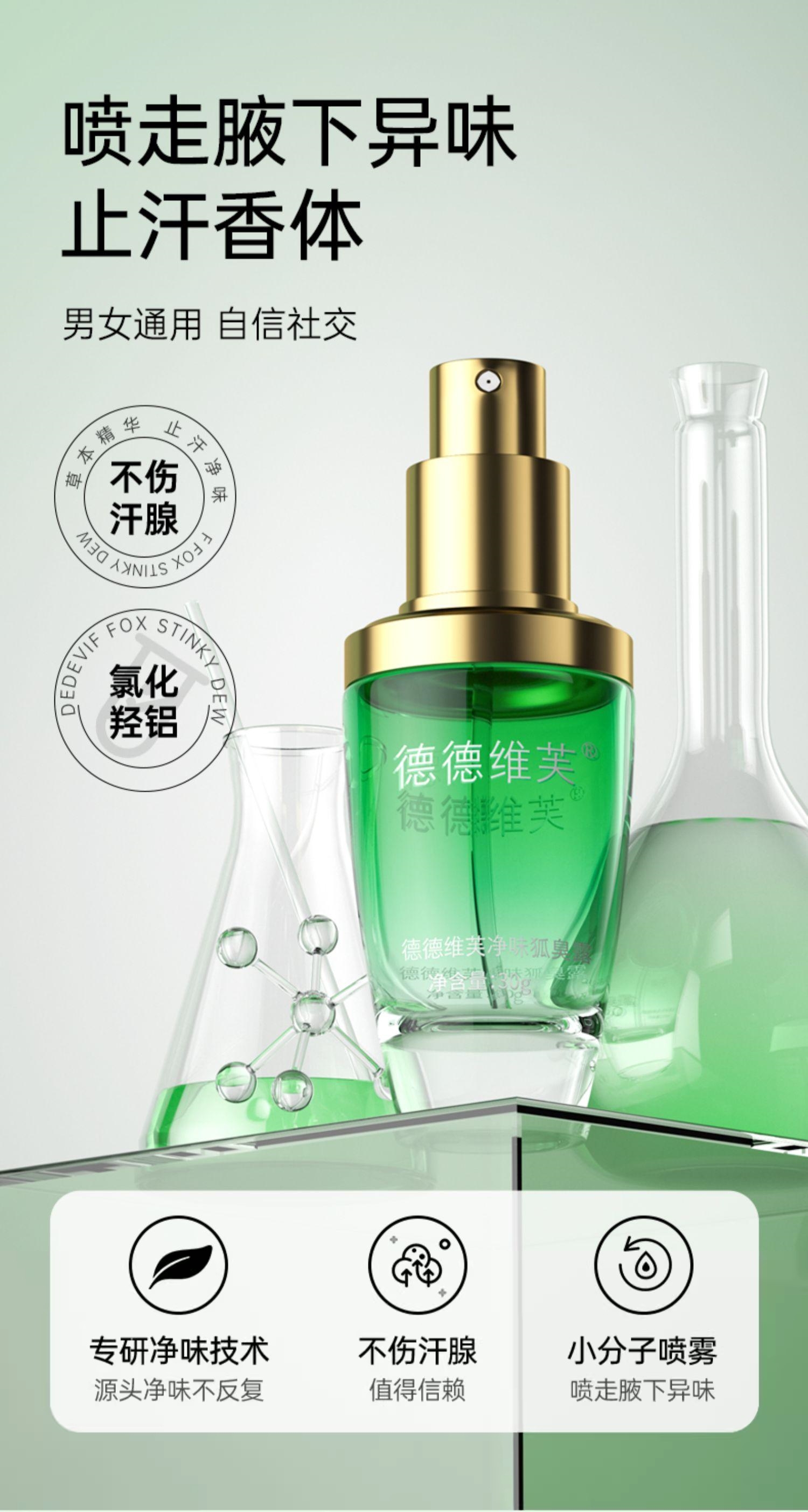 拍1发3!赠同品牌洗面奶!【DETVFO净味小绿瓶】止汗去异味 温润不刺激 持续清爽 自信社交