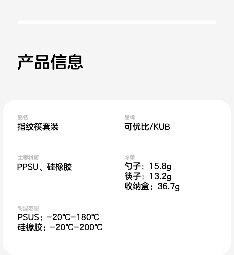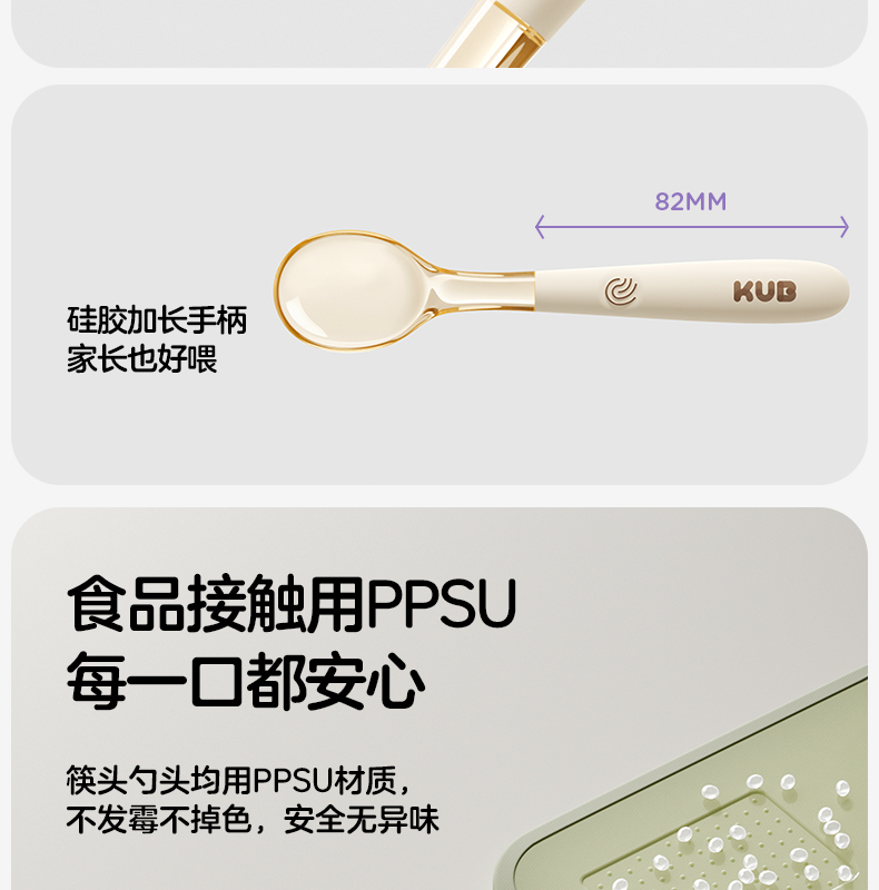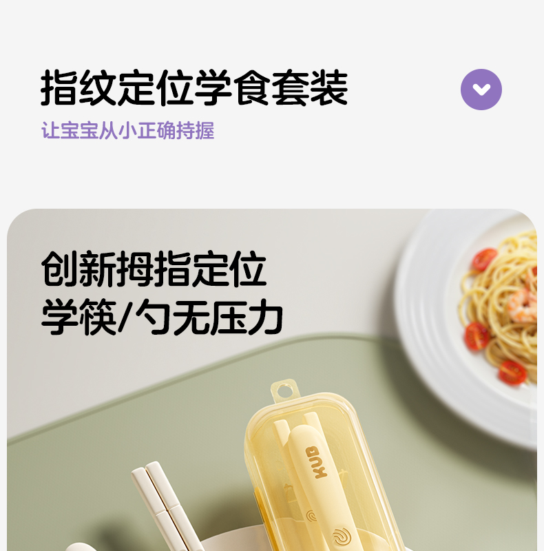 KUB可优比儿童筷子训练筷勺子PPSU防滑指纹幼儿吃饭专用儿童餐具