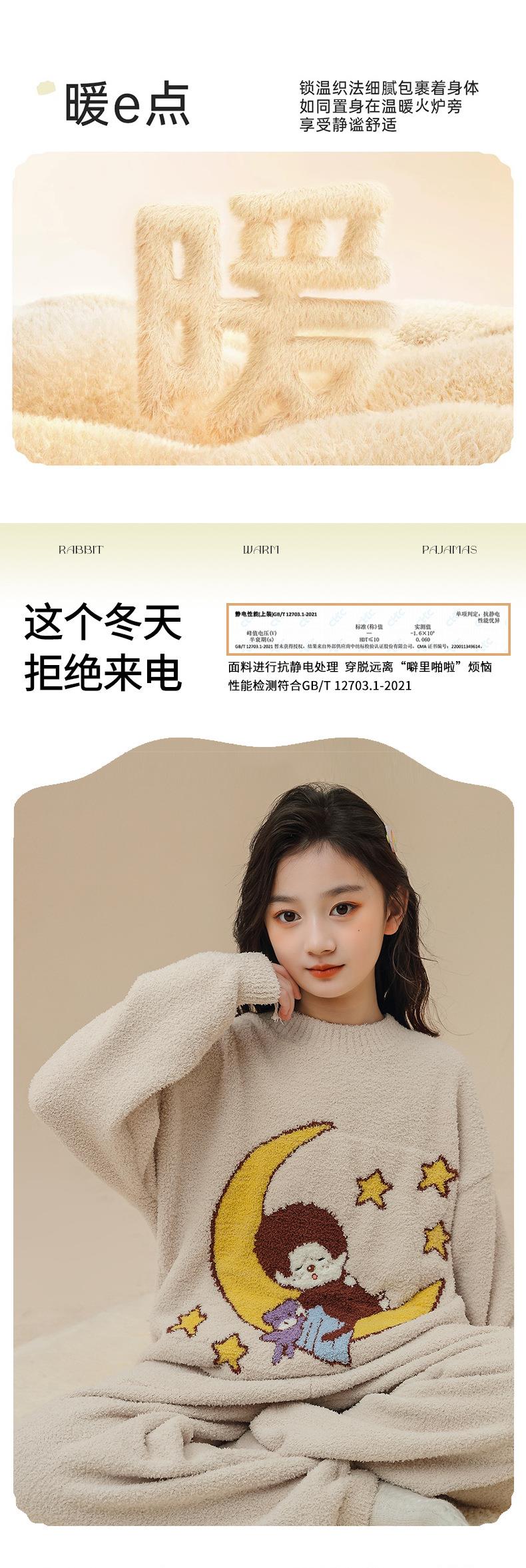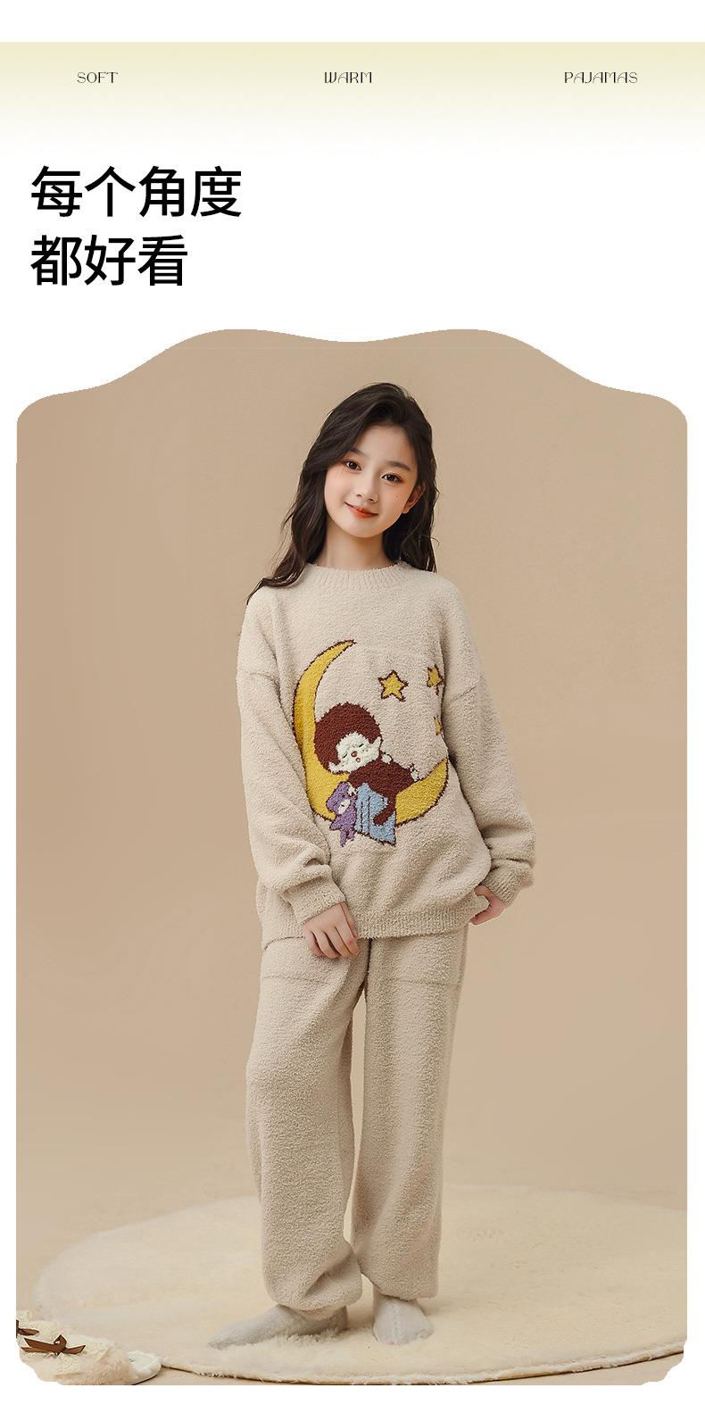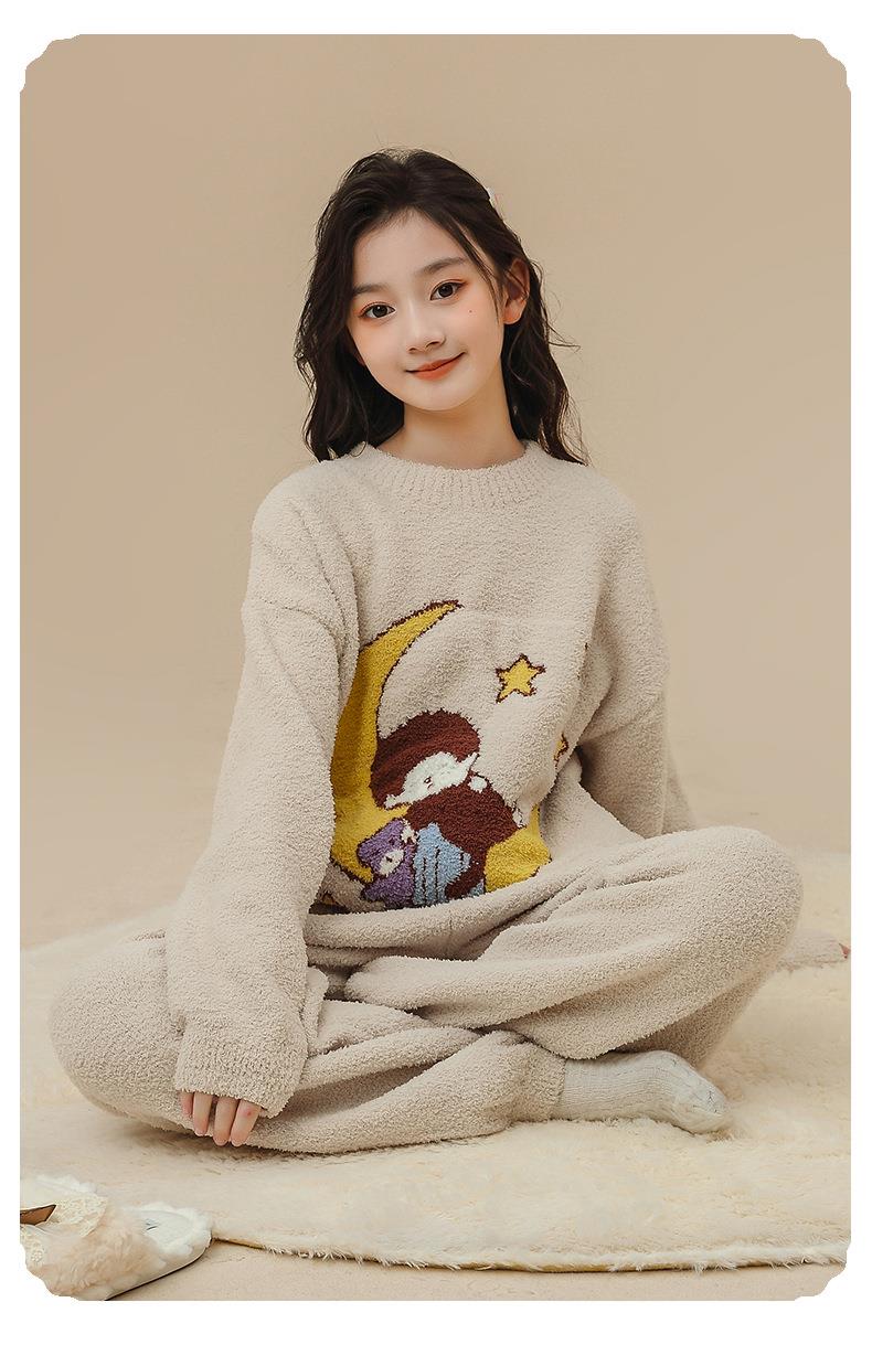 女童睡衣家居服女生萌趣趣秋冬保暖珊瑚绒软绵绵新款女孩可爱套装