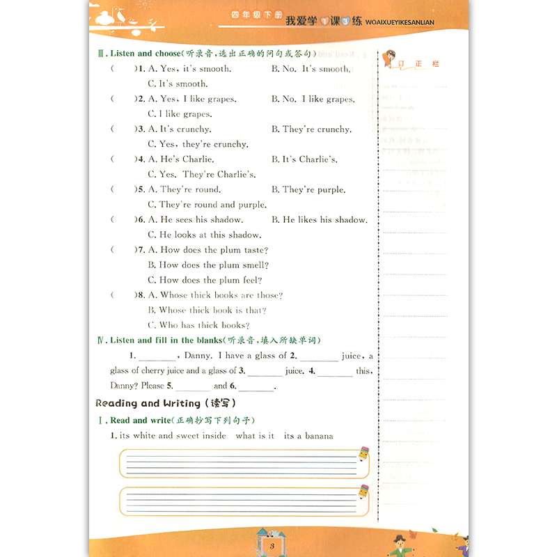 2022我爱学 1课3练 四年级下/4年级下册 英语1课3练上海市同步配套教辅上海地区上海小学教辅课后练习 含达标测试卷 参考答案