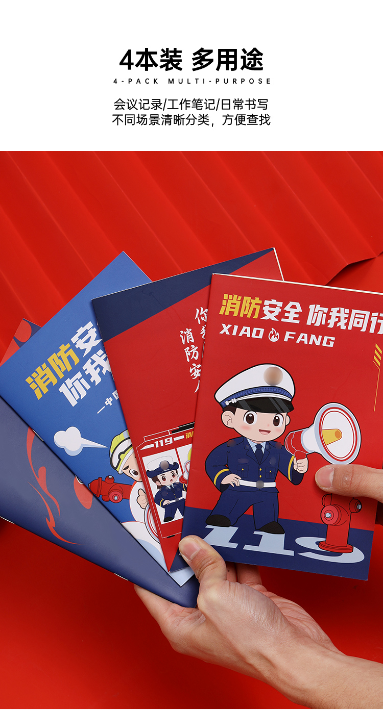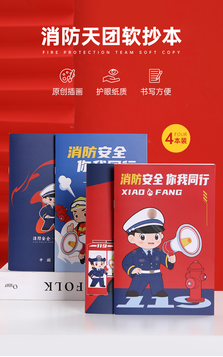 【消防天团软抄本(4本装)】会议记录本手抄本 办公学习笔记本日记本