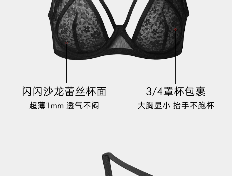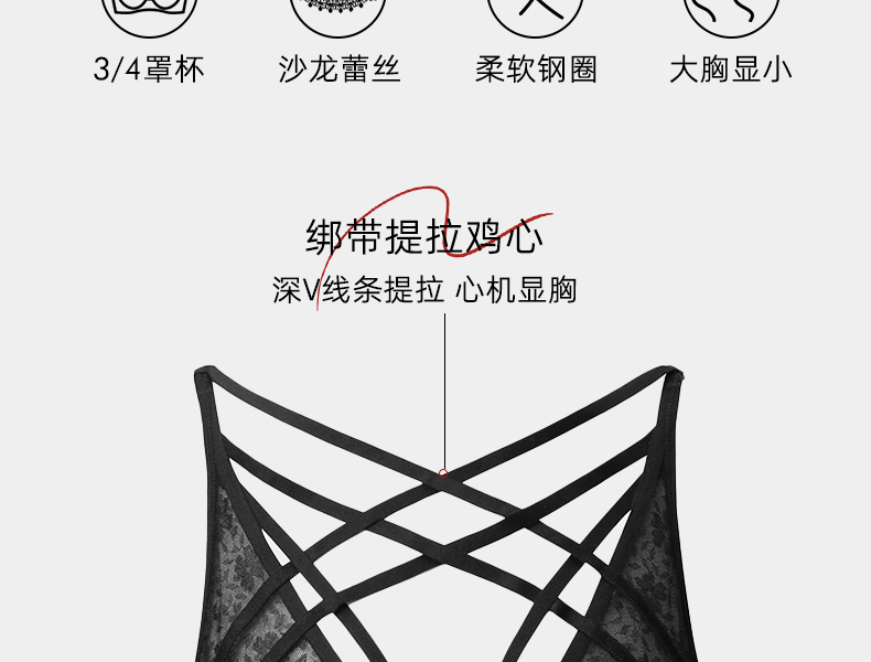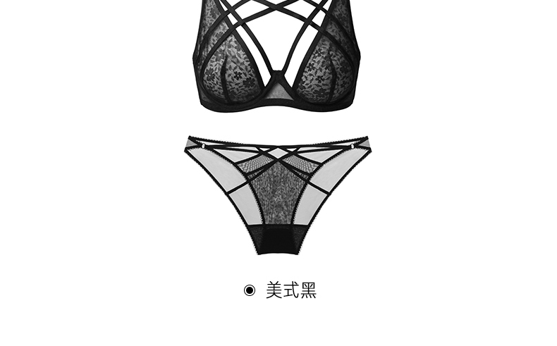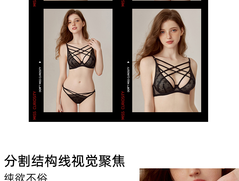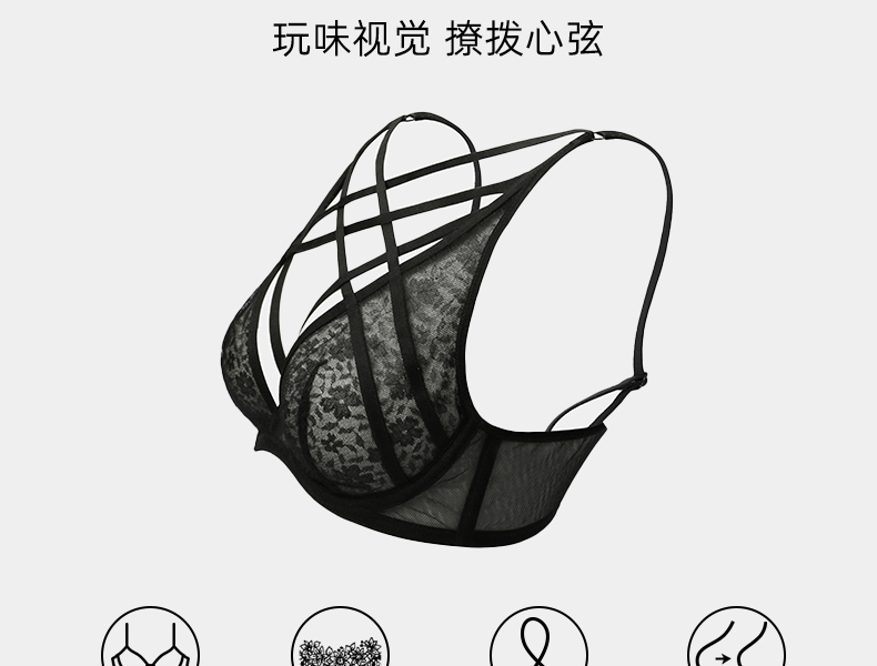 好奇蜜斯性感蕾丝绑带内衣女情调镂空文胸套装大胸显小上托防下垂 加丽