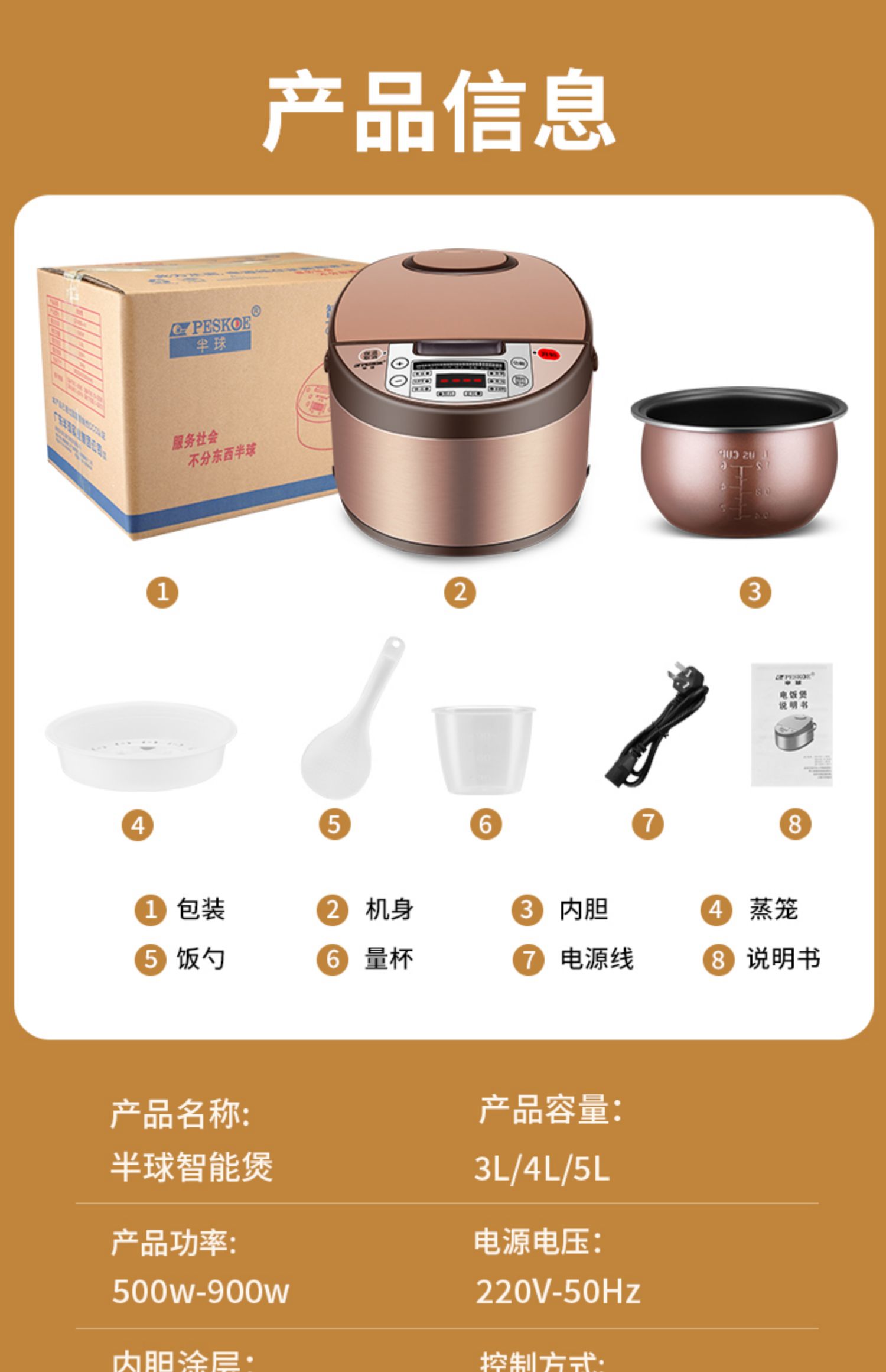 半球电饭煲家用3L智能多功能2-4人