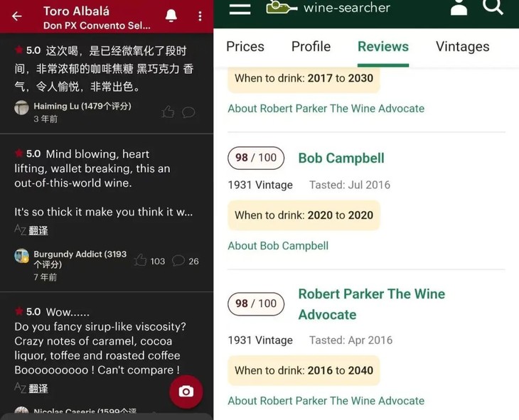 酒神Robert Parker对1931年的年份Toro Albala同样给出了98分的超高分并且评价道:“自1931年开始陈酿的超级老年份的雪莉酒彷佛把时光封存了,是无限深沉浓厚的甜蜜体验,多变复杂,层次丰盈,触手可及又直击灵魂!只有喝过才会懂!”