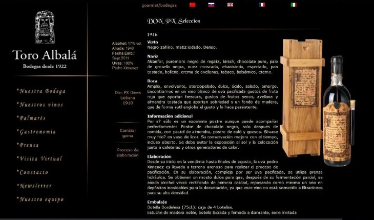 Toro Albala是由何塞·马里亚·托罗·阿尔巴拉(Jose María Toro Albala)建立于1922年,其历史可以追溯到 1844 年由阿尔巴拉的祖父建立的庄园。70 年代起,酒庄就开始培养独家的索雷拉年份陈酿系统,是真正的老年份PX葡萄酒专家。直至今日,酒窖的橡木桶中熟化着长达 100 年历史的PX葡萄酒。