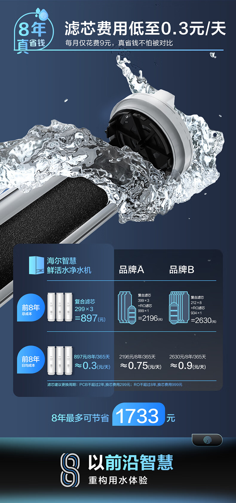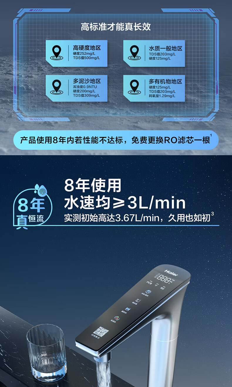 海尔(Haier)【小红花净水器-绽放版】鲜活水ProMax1400G流速直饮机8年进口膜HKC3000-R889D2U1家电国家补贴