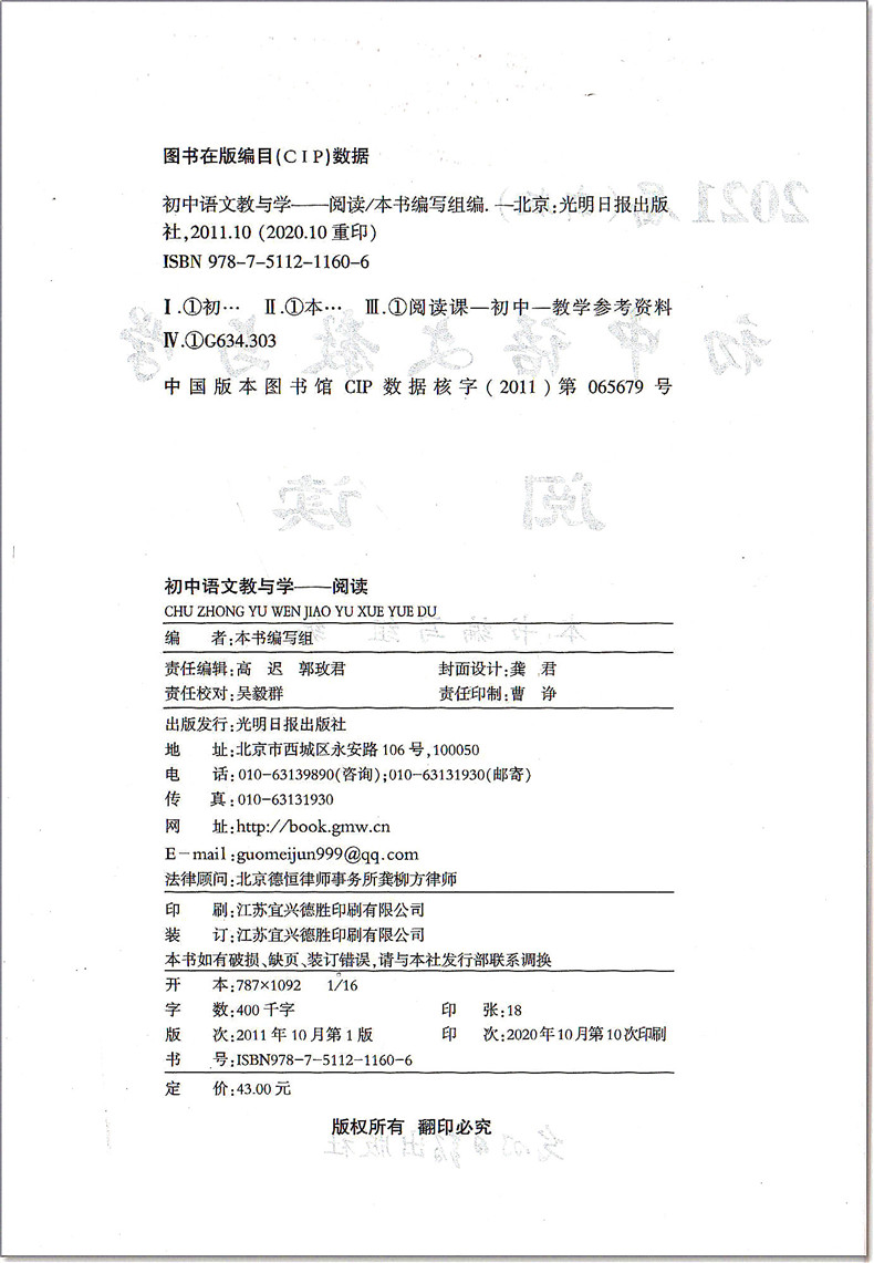 正版现货 2021届新版 初中语文教与学 阅读 书+答案+初三语文模拟测试卷 上海市初三总复习用书 光明日报出版社