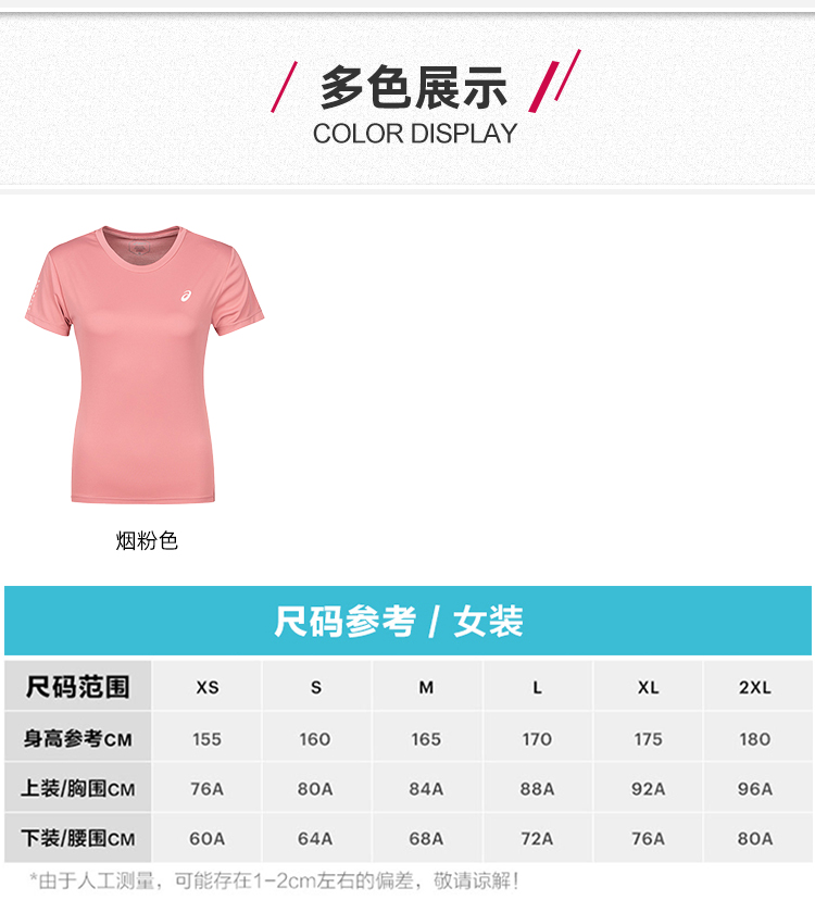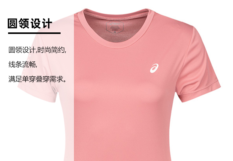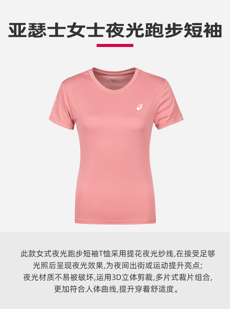 ASICS亚瑟士女式夜光跑步短袖T恤速干透气时尚简约圆领运动上衣