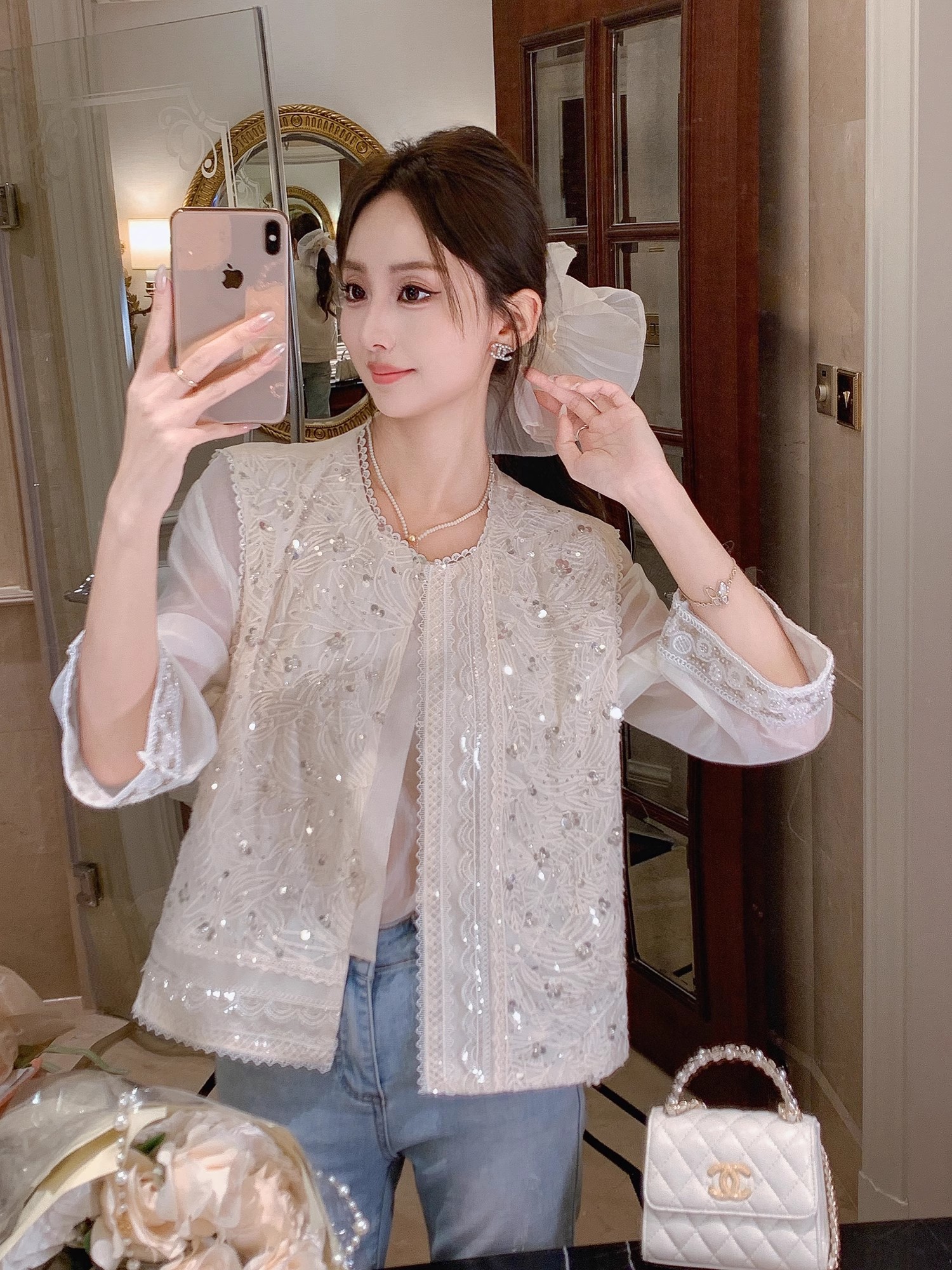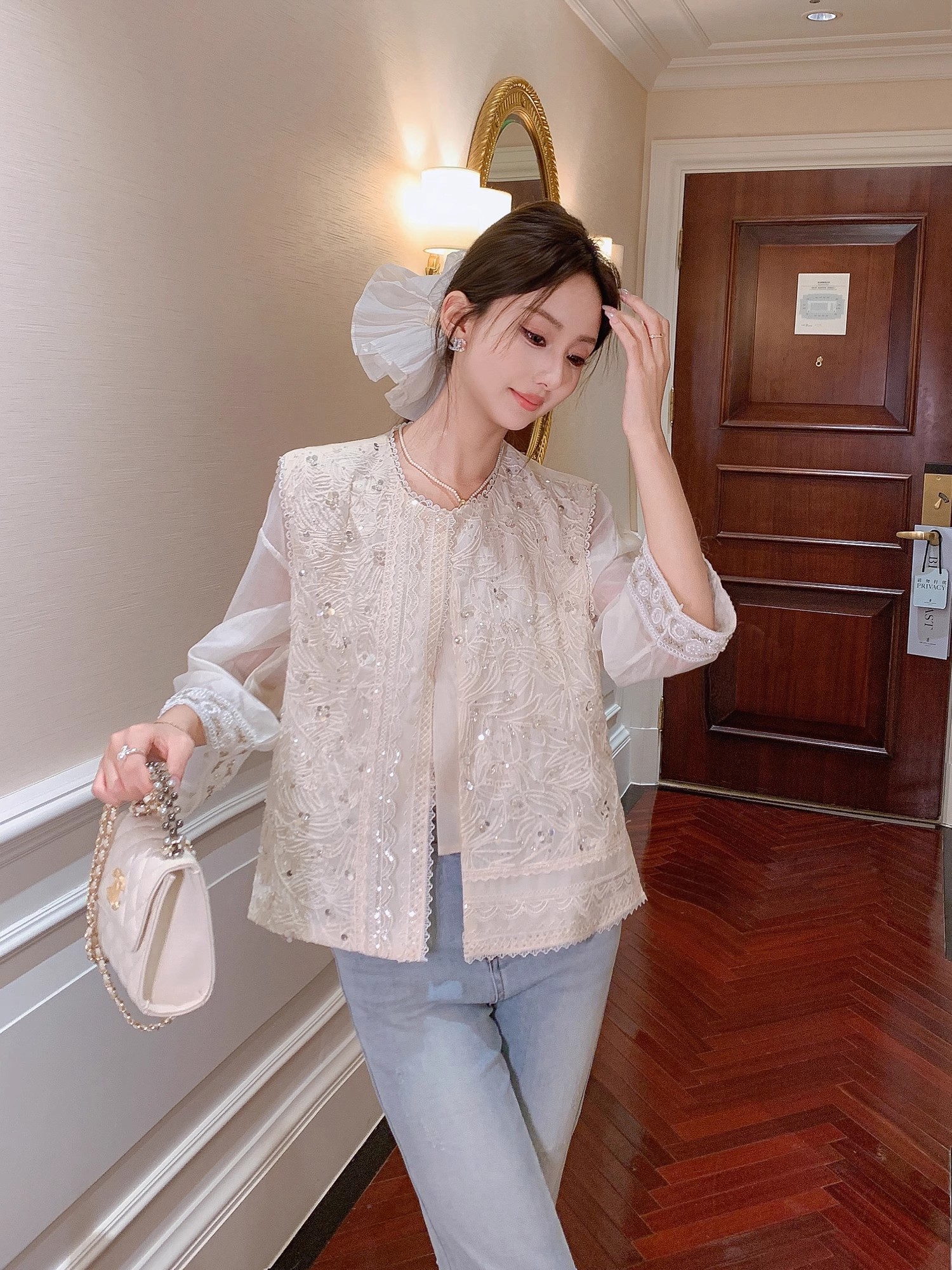 张心子【冬的诗篇】圆领仙气满天星羽毛手袖上衣 U2511070