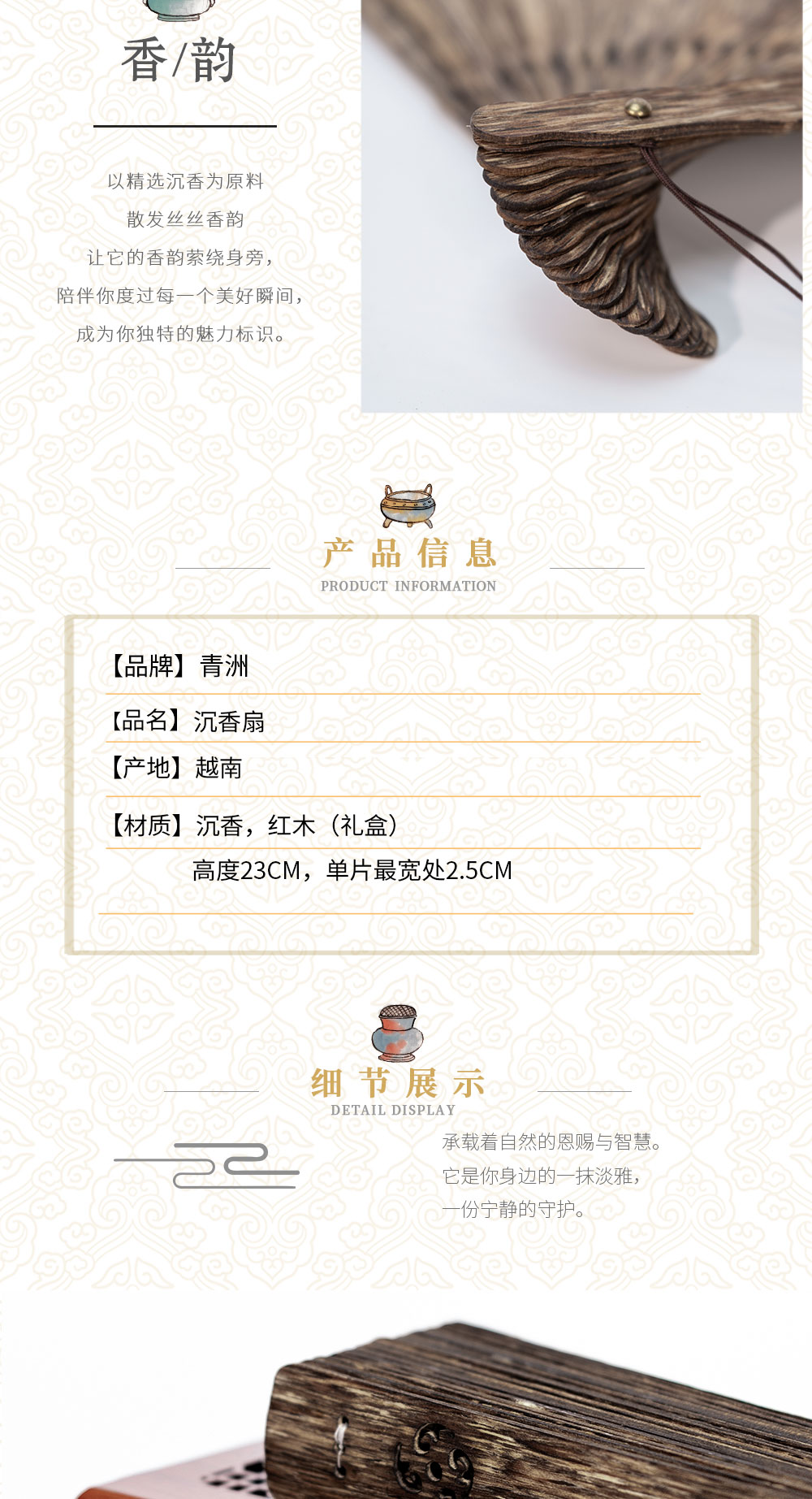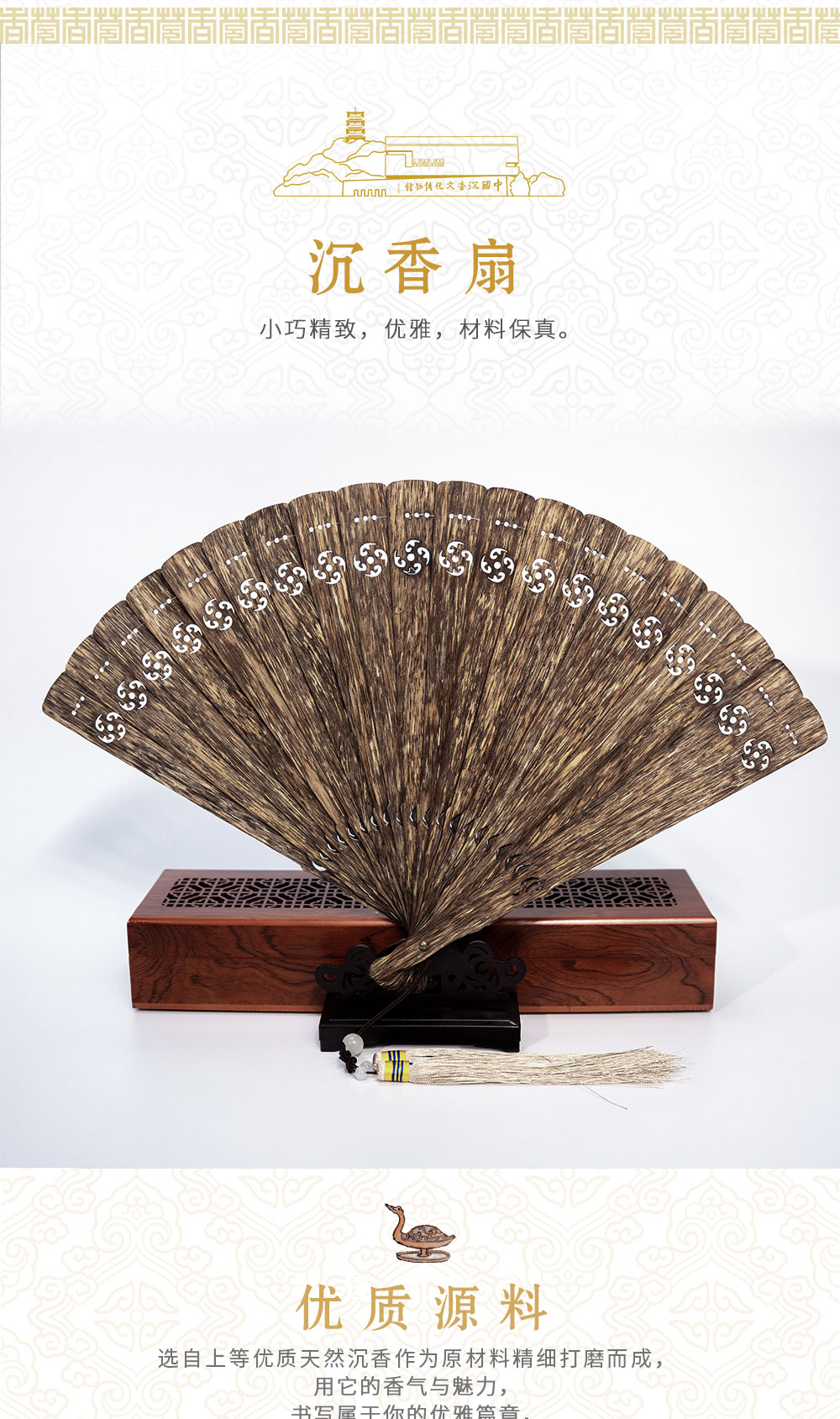 天然摆件送礼商务挂件文创产品支持定制logo沉香扇23厘米