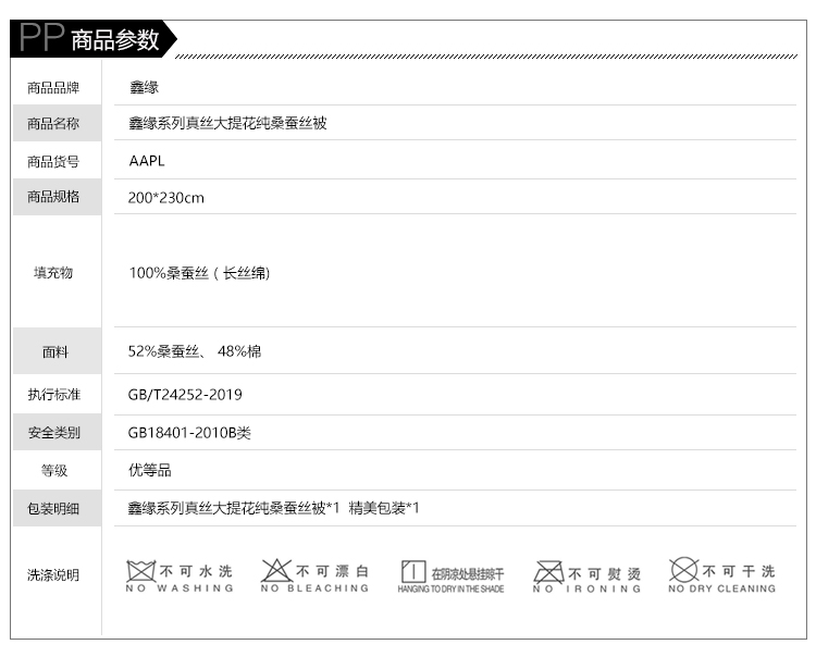 鑫缘系列真丝大提花纯桑蚕丝被 AAPL