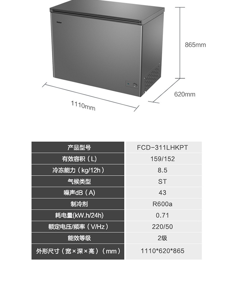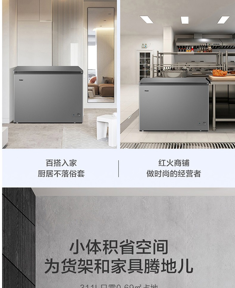 【特惠】【冷藏冷冻同时用】海尔(Haier)冰柜双温柜大容量冷藏冷冻门双温区冷柜商用家用双温大冷柜 FCD-311LHKPT冷藏152升+冷冻159升