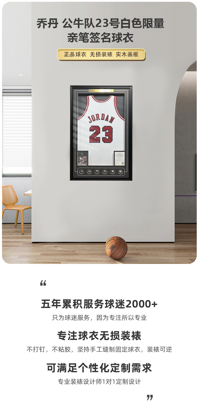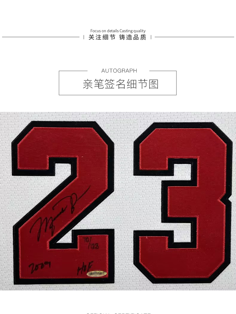 收藏系列 乔丹 公牛队23号白色限量 亲笔签名球衣