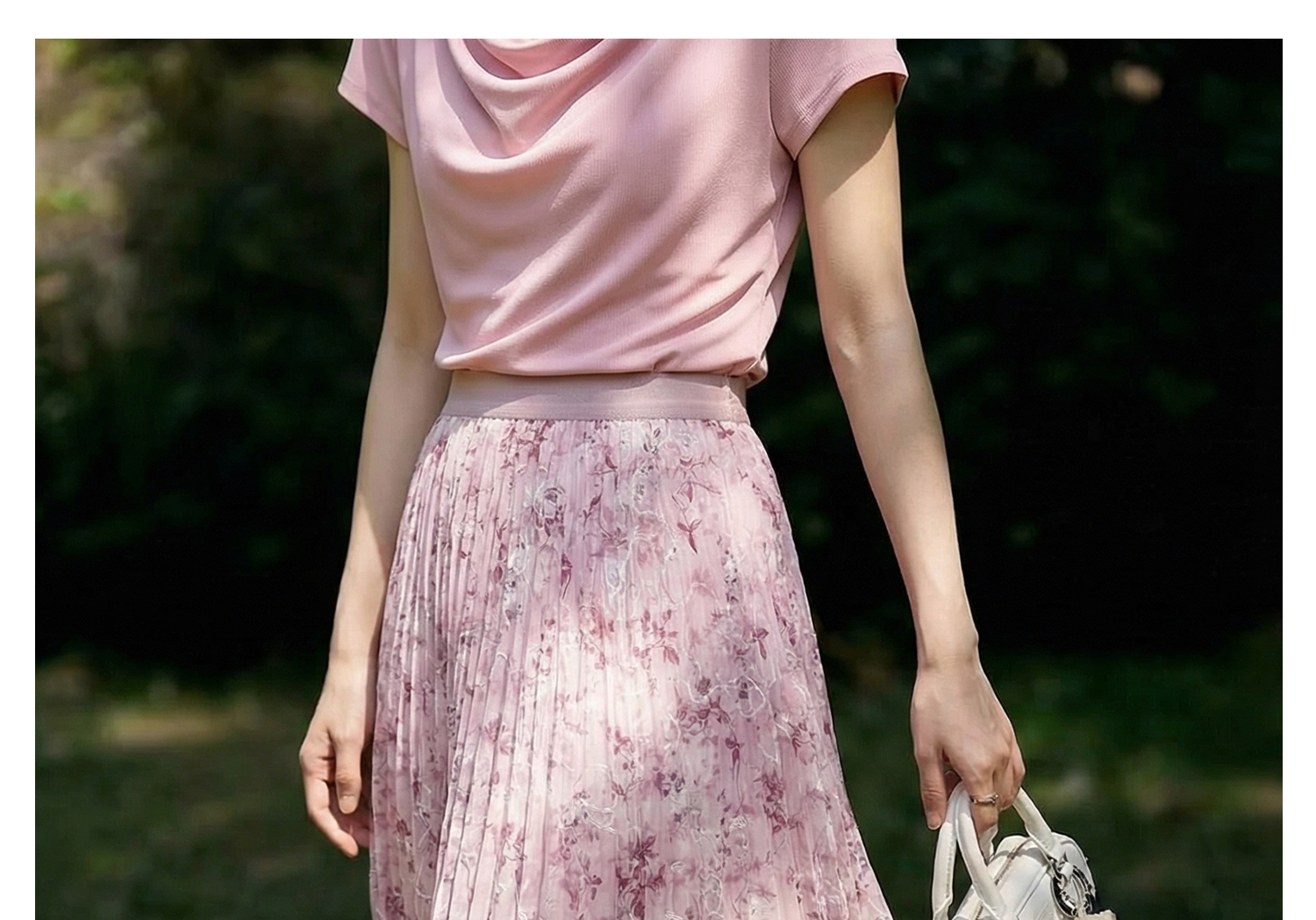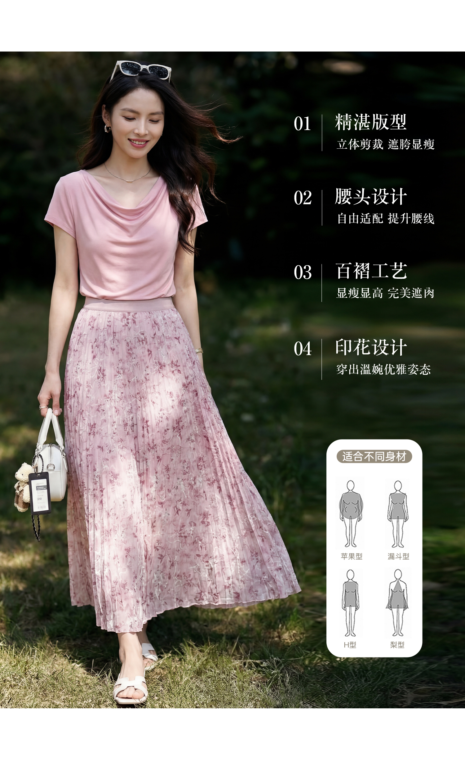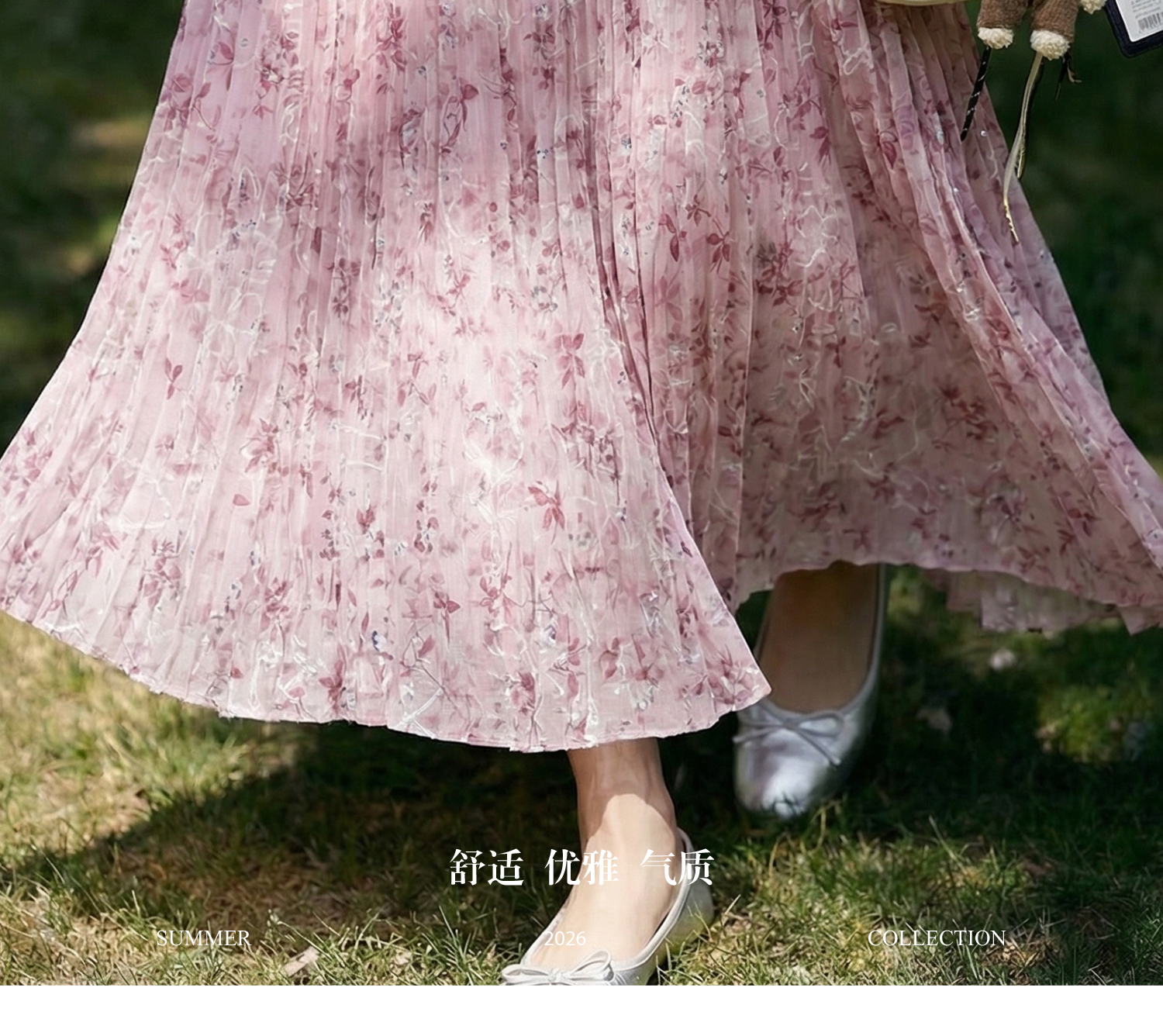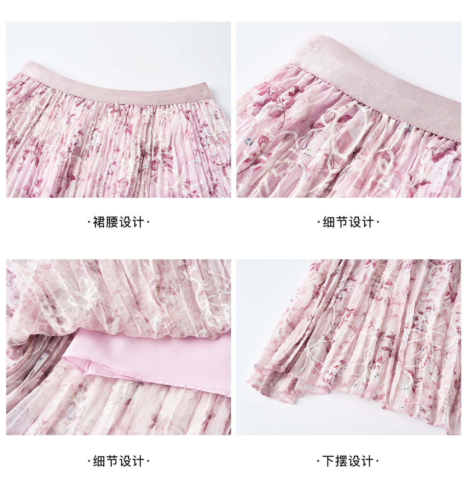 浪漫明媚印花半身裙 米思阳2026夏新款宽松显瘦高腰松紧腰A字百褶裙1175
