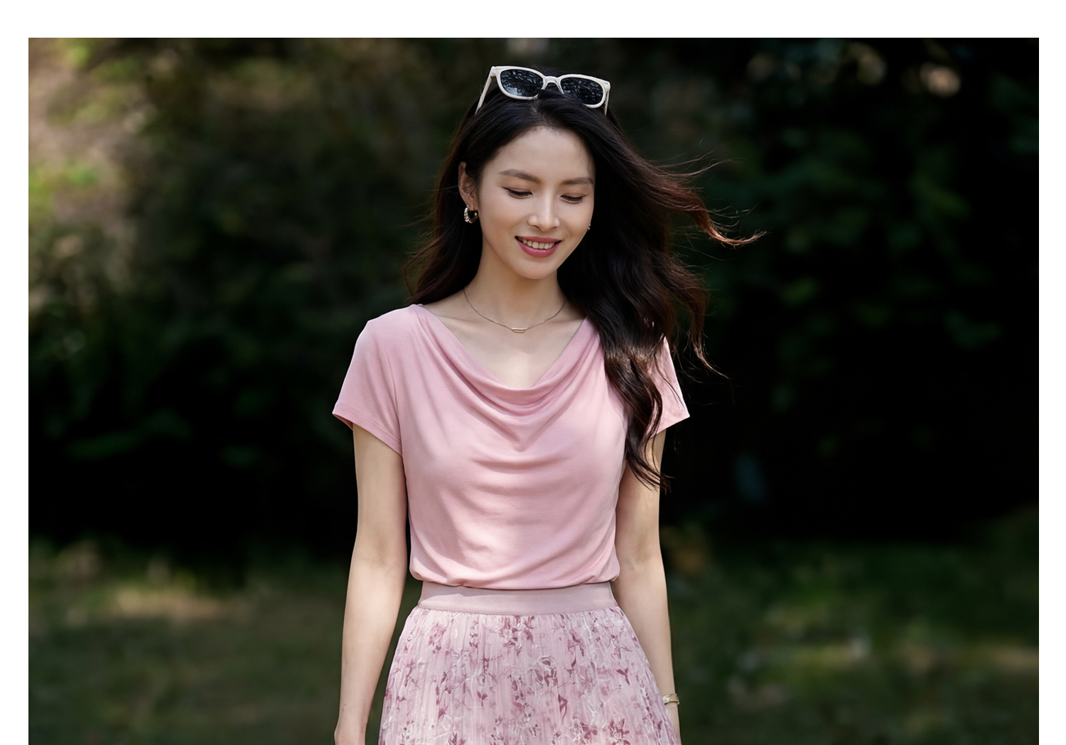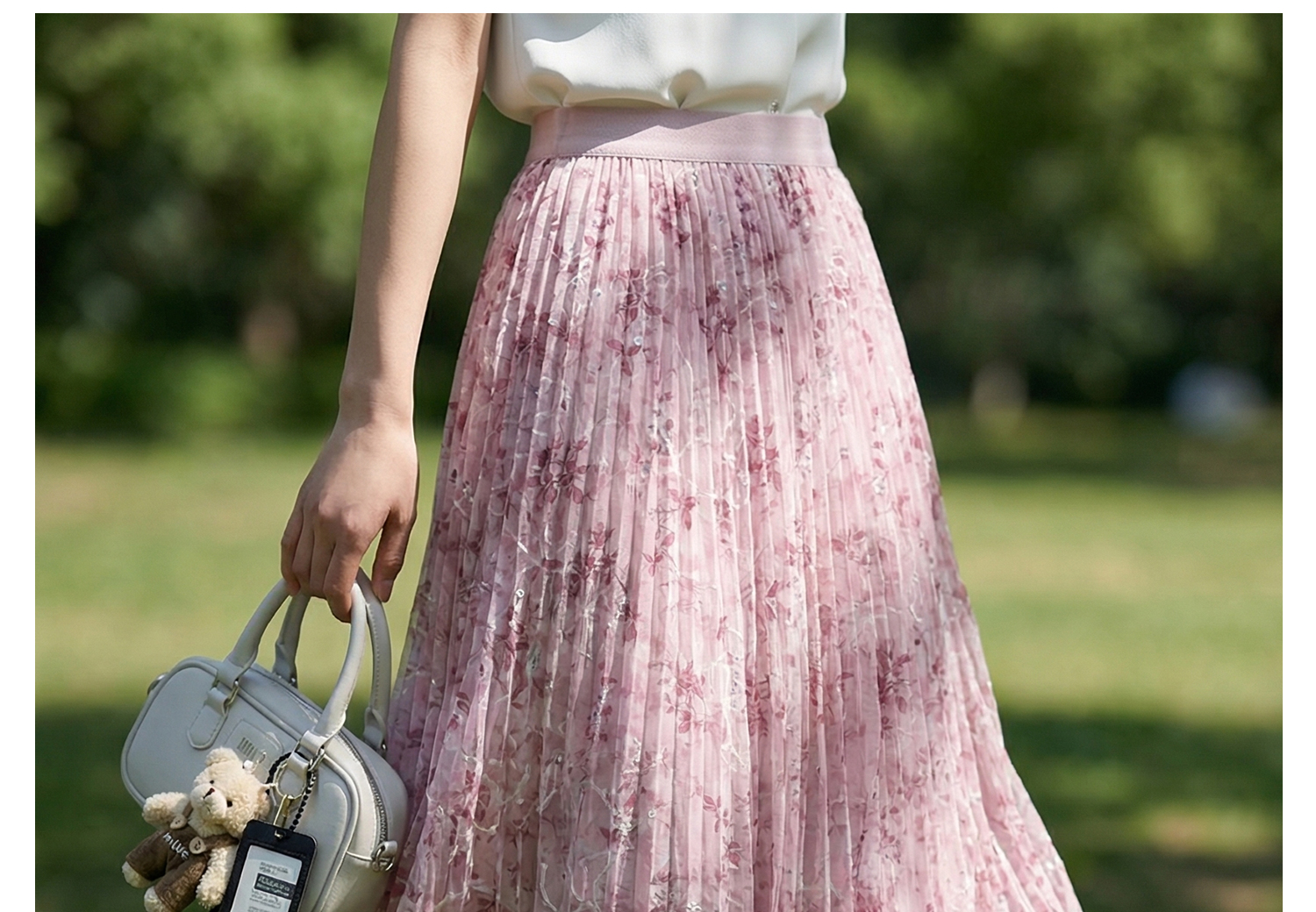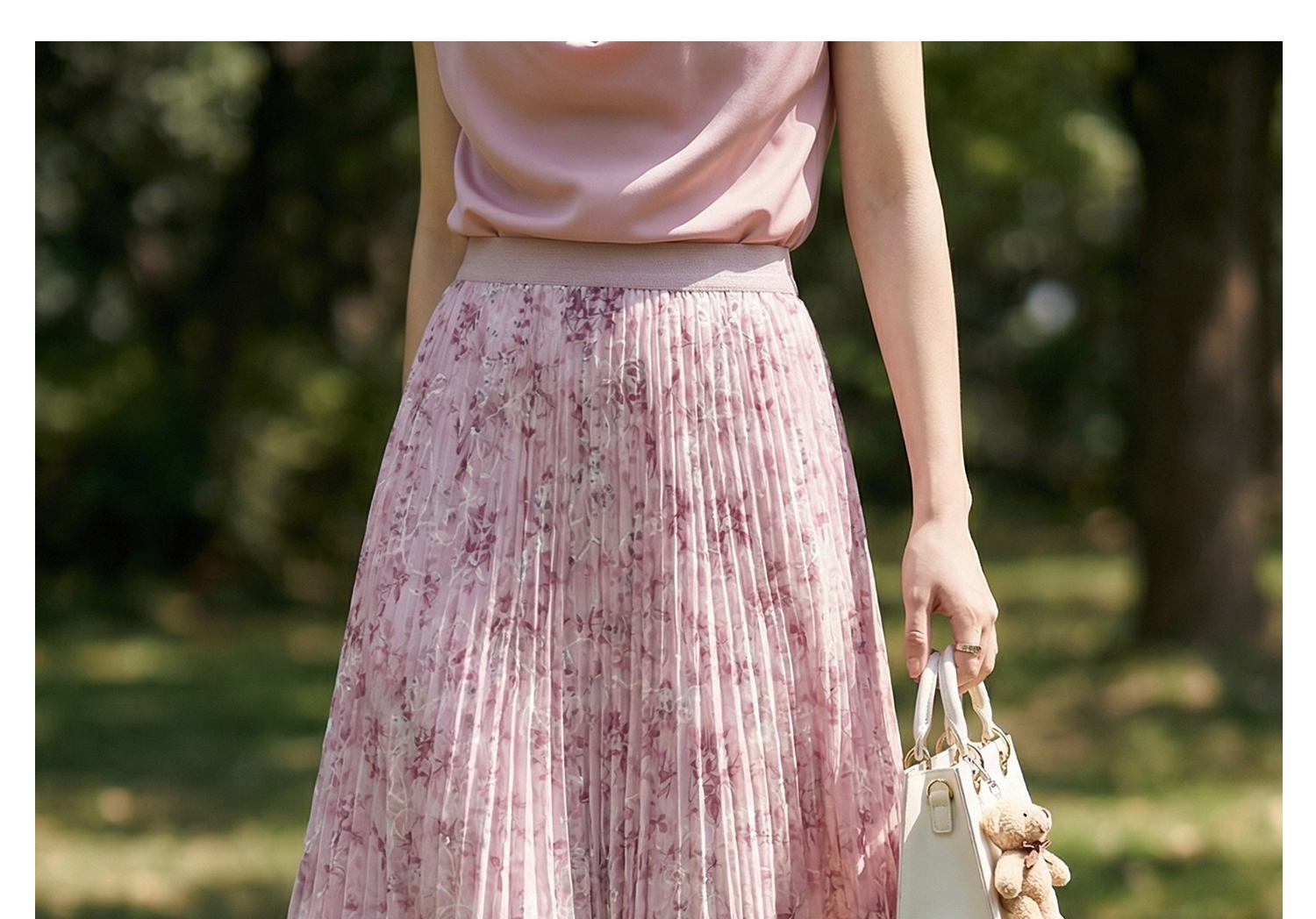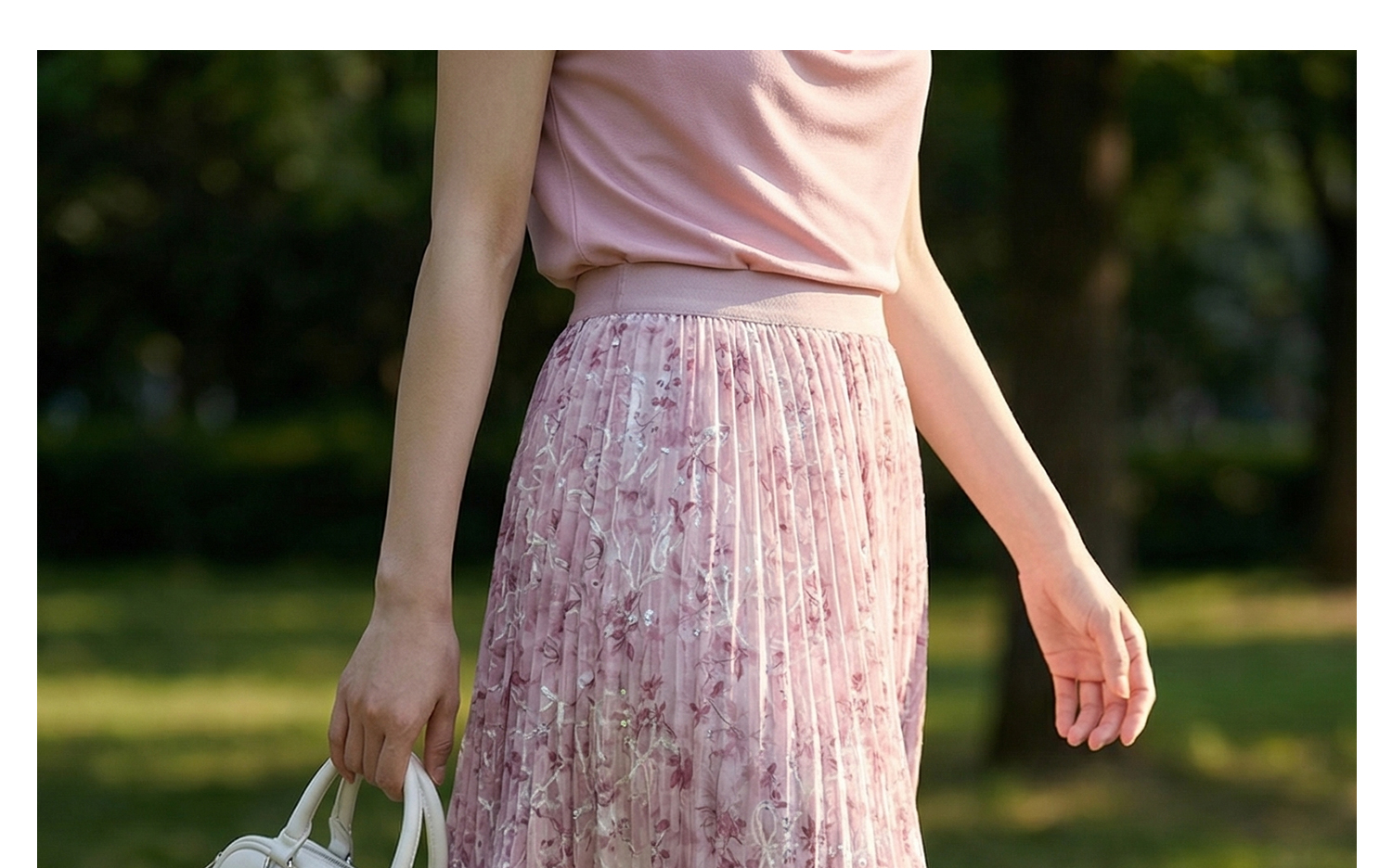 浪漫明媚印花半身裙 米思阳2026夏新款宽松显瘦高腰松紧腰A字百褶裙1175