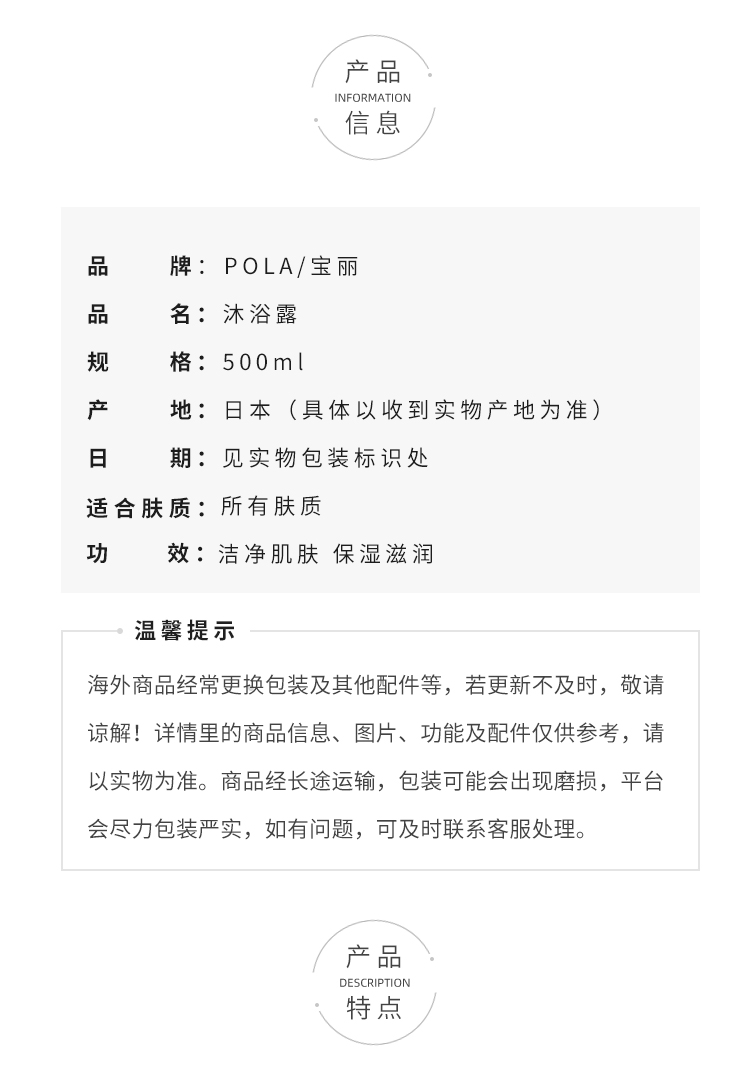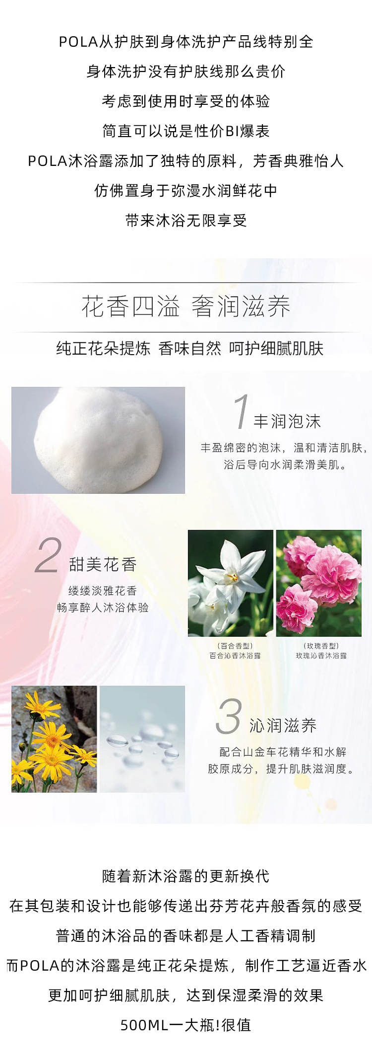 POLA宝丽茉莉桂花玫瑰香沐浴露500ml 斩男香香氛泡沫细腻滋润肌肤