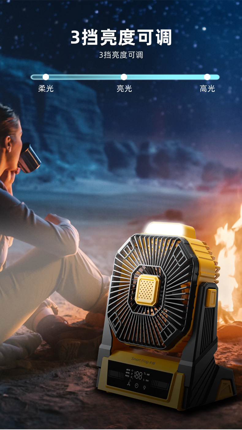 【户外露营小风扇】卡蛙 机甲风户外风扇 挂立两用 俯仰可调 12H定时 3档照明 长效续航 户外露营/厨房壁挂/办公桌面多场景适用 KW-MF11E2