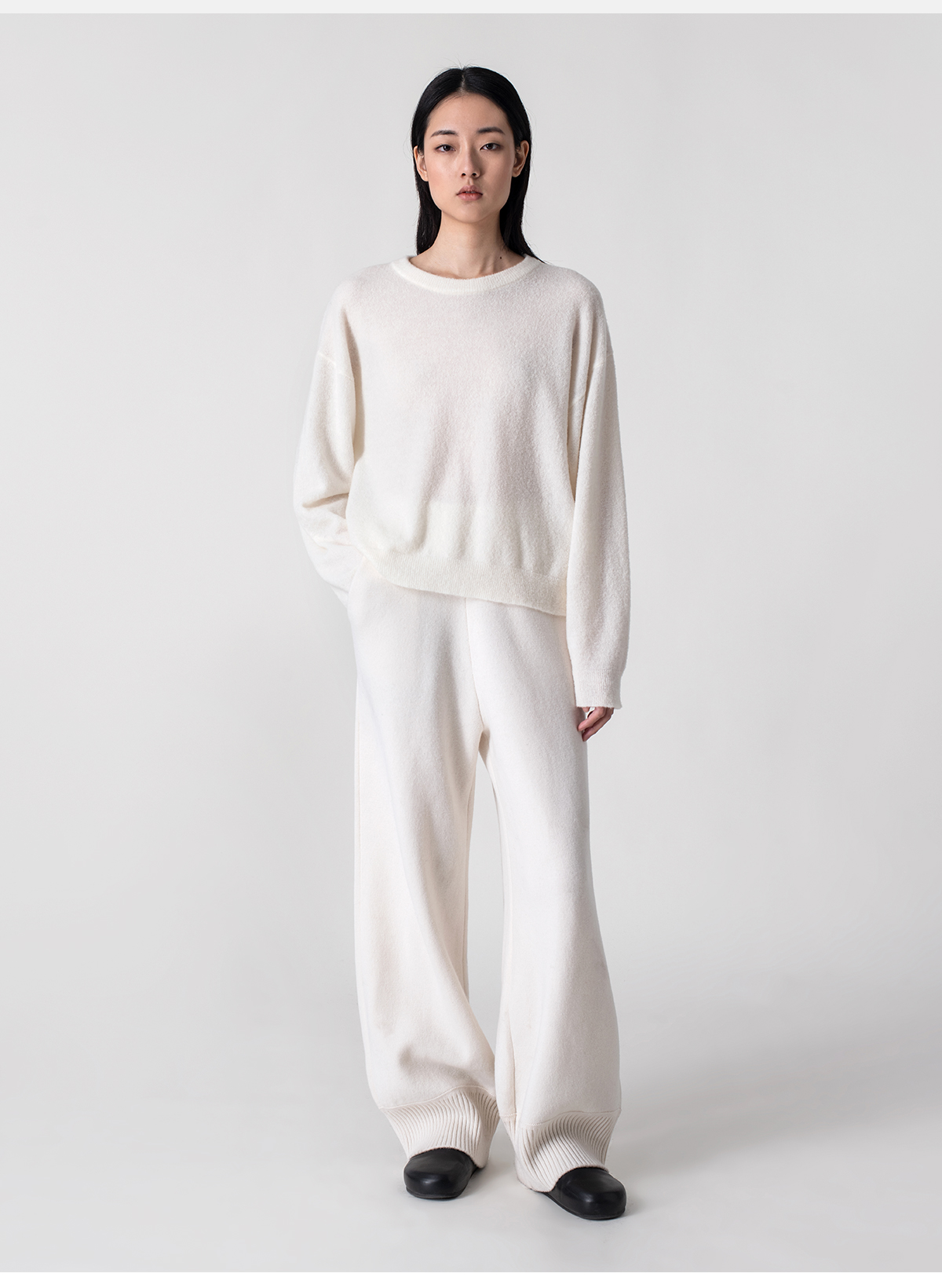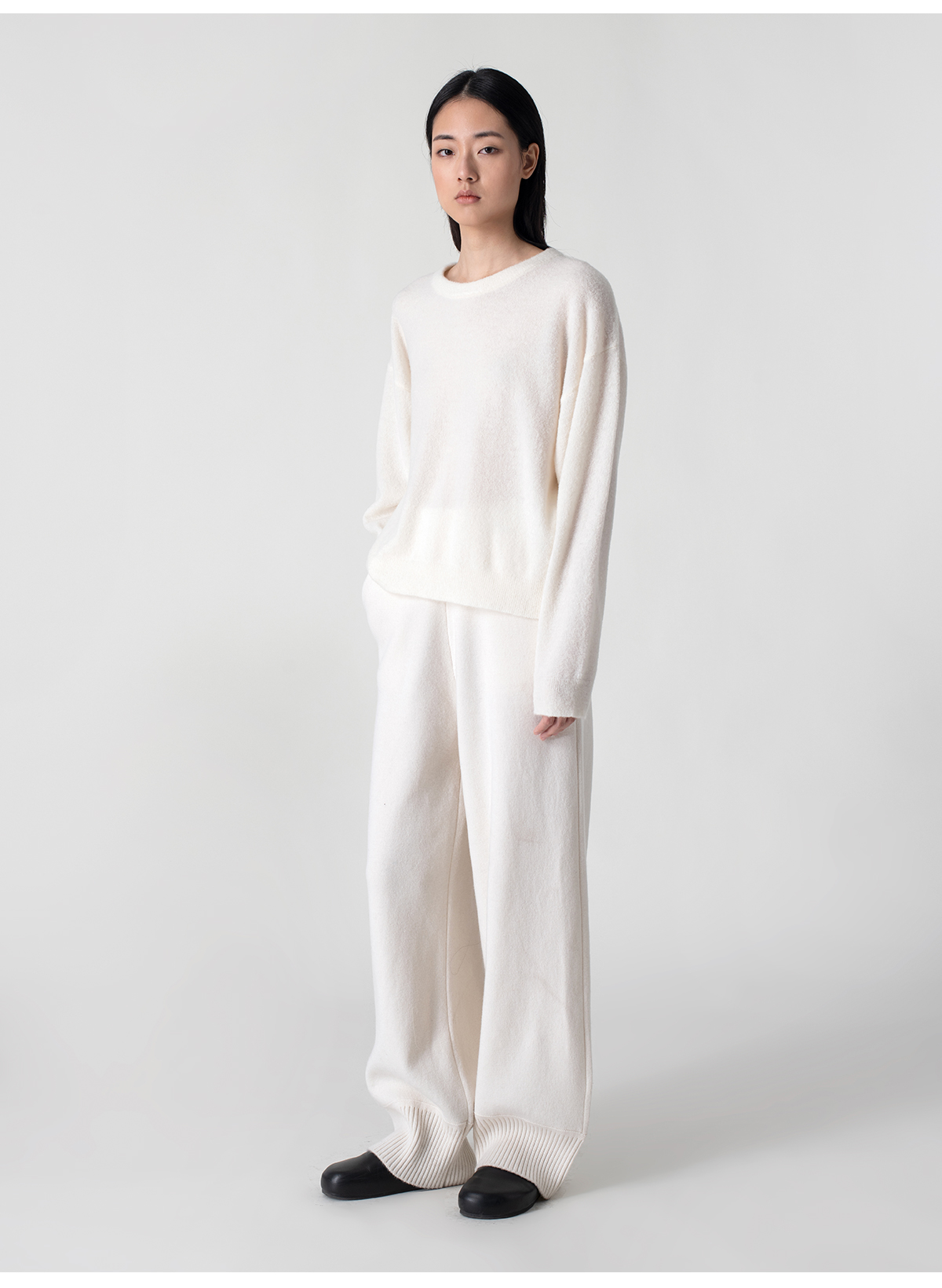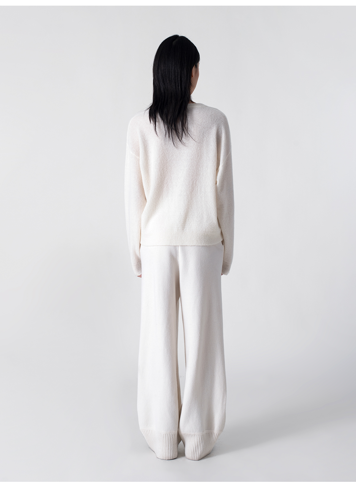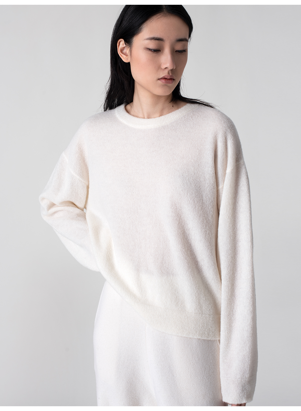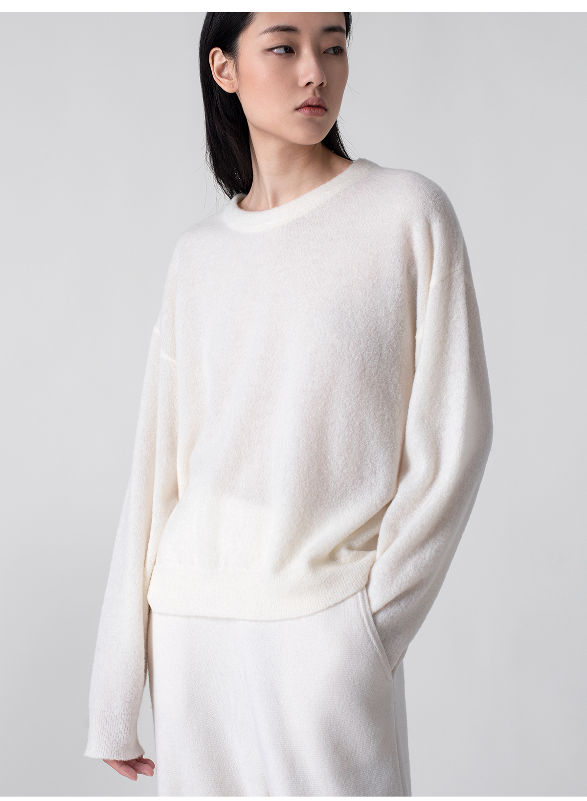 322工房混纺羊毛针织衫女2023年新款秋长袖宽松圆领落肩袖套头衫
