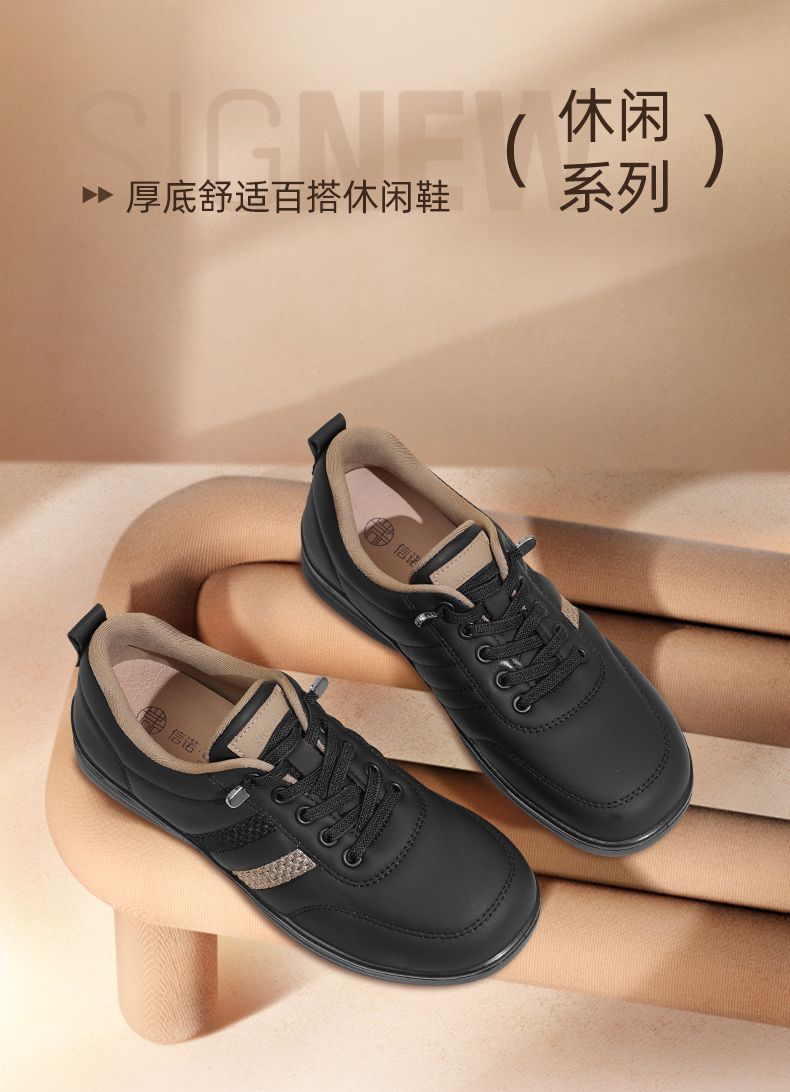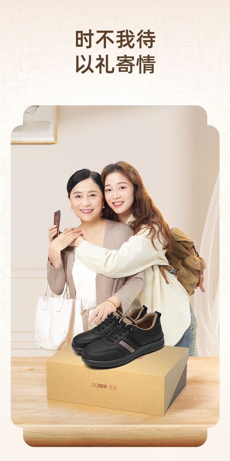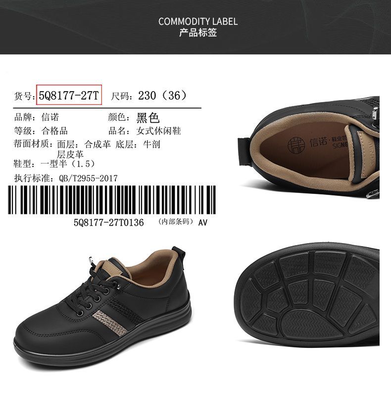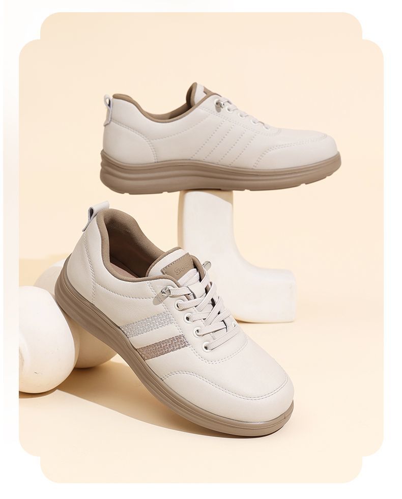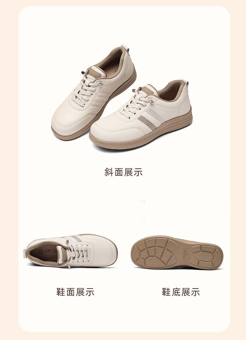 信诺真皮舒适妈妈鞋女百搭小白鞋运动休闲鞋2025新款秋中老年单鞋5Q8177-27T