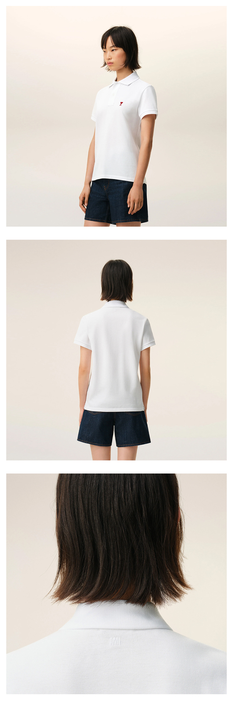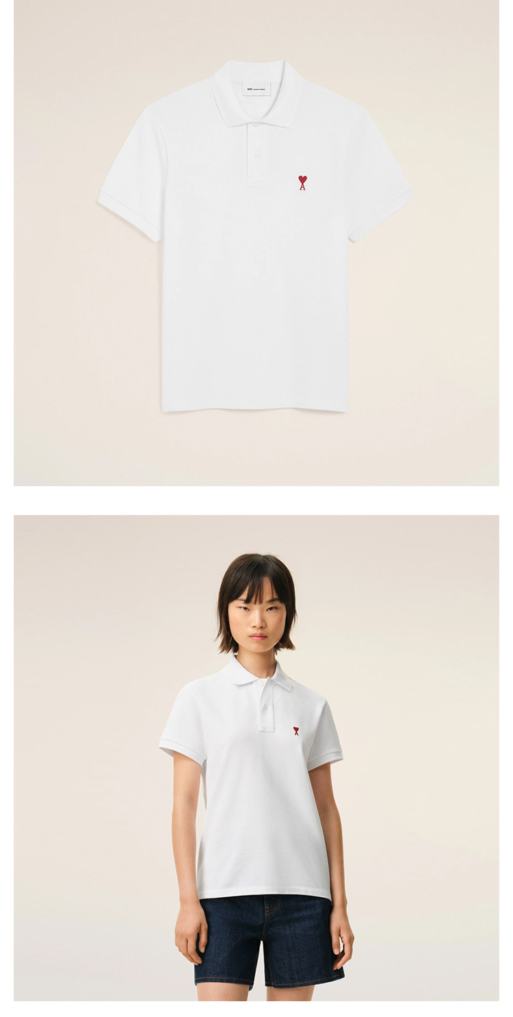 【二】AMI PARIS 中性心形徽标刺绣棉质短袖polo衫 白色 BFUPL001 760 100