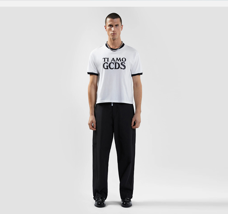 GCDS 男士字母徽标标签混纺棉质休闲裤 黑色 B1CM2906TM2 99