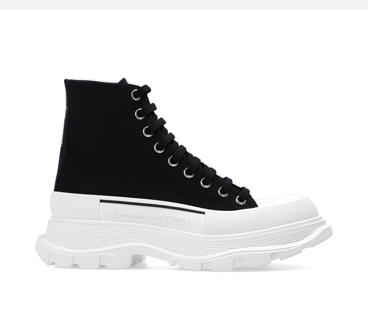 ALEXANDER MCQUEEN 亚历山大.麦昆 女士棉质 Tread Slick 高帮系带靴子休闲运动鞋 黑色 611706 W4MV2 1070