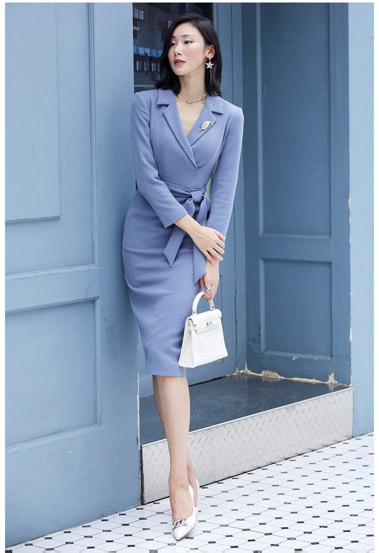 LT1XC1672A 主持人款 “都市精英” 连衣裙 干练通勤 时尚简约颈袖添香