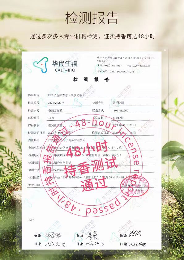 街边的廉价香水味道不仅劣质, 还容易汞铅超标,对人危害很大。 而FPF的检测报告全部合格。