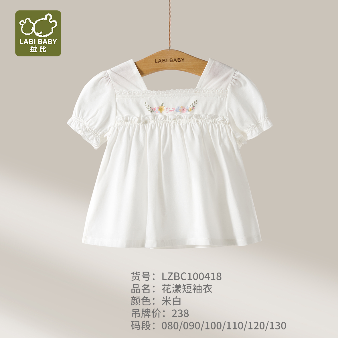 拉比童衣夏花漾短袖衣米白j6LZBC100418