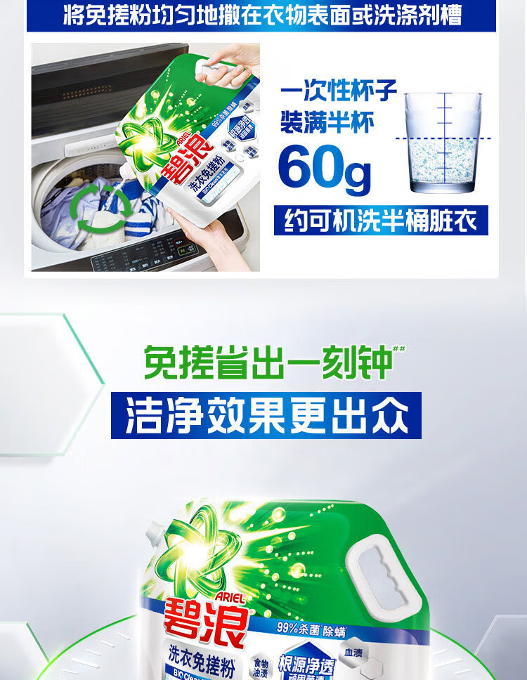 碧浪创新专研洗衣免搓粉阳光薰衣草1.36KG*2包