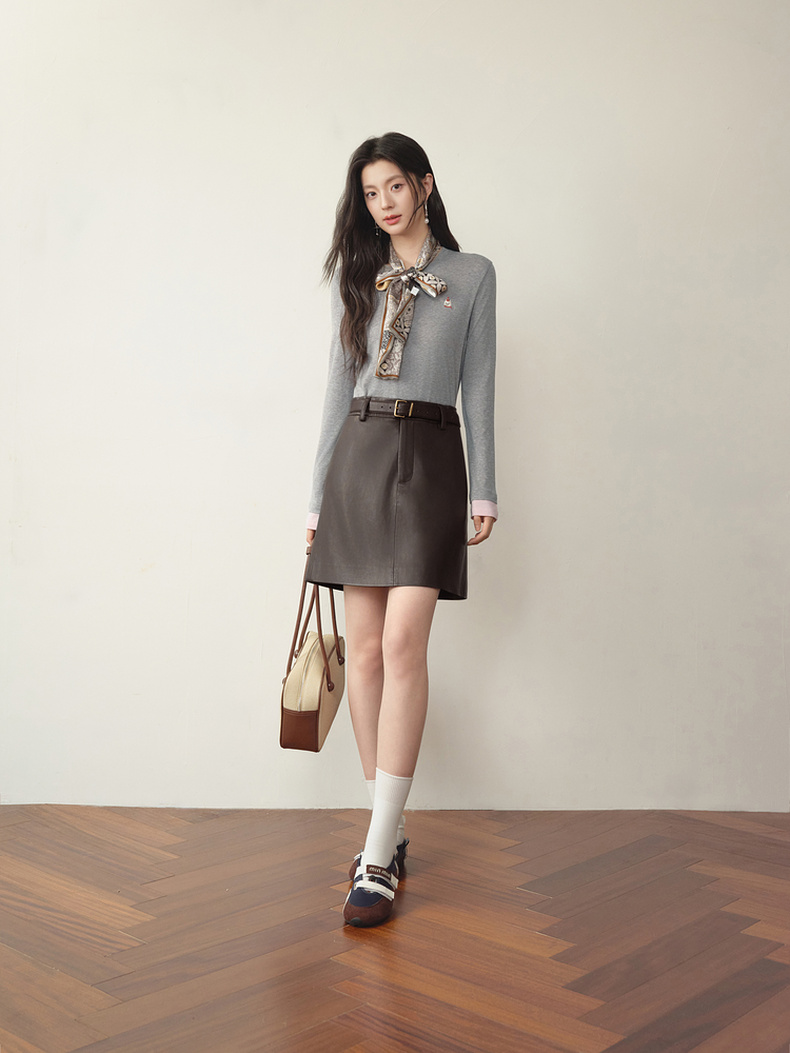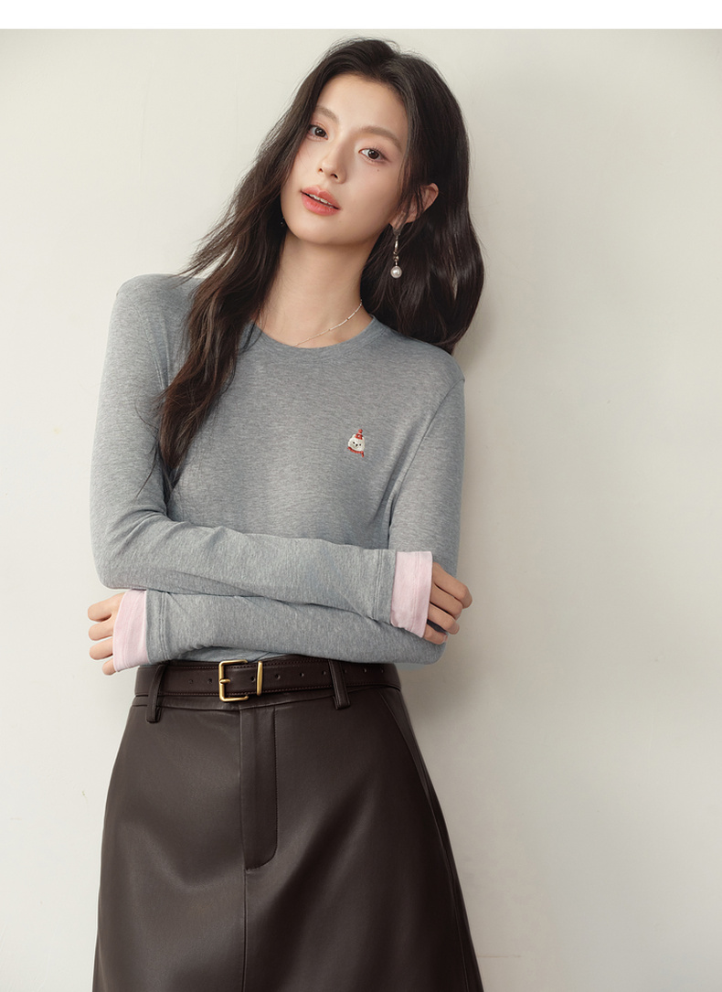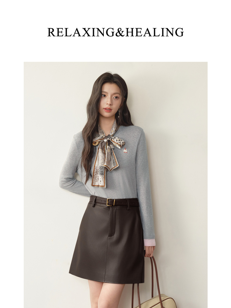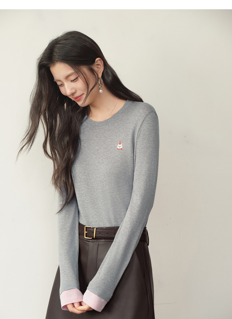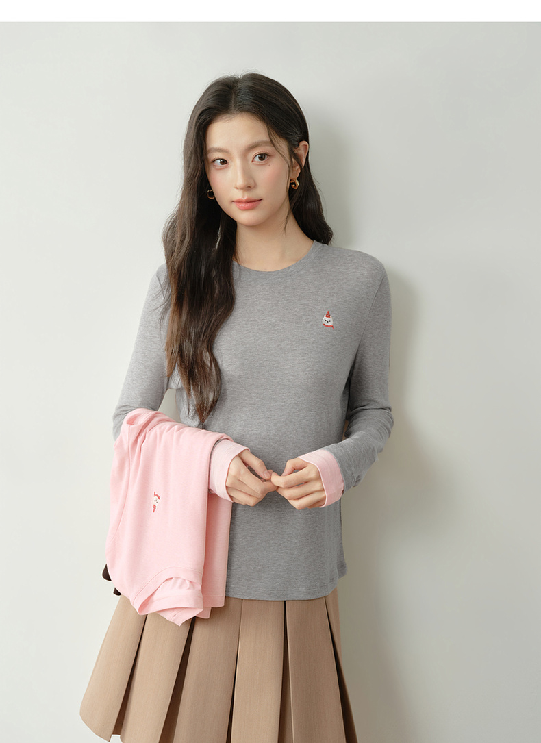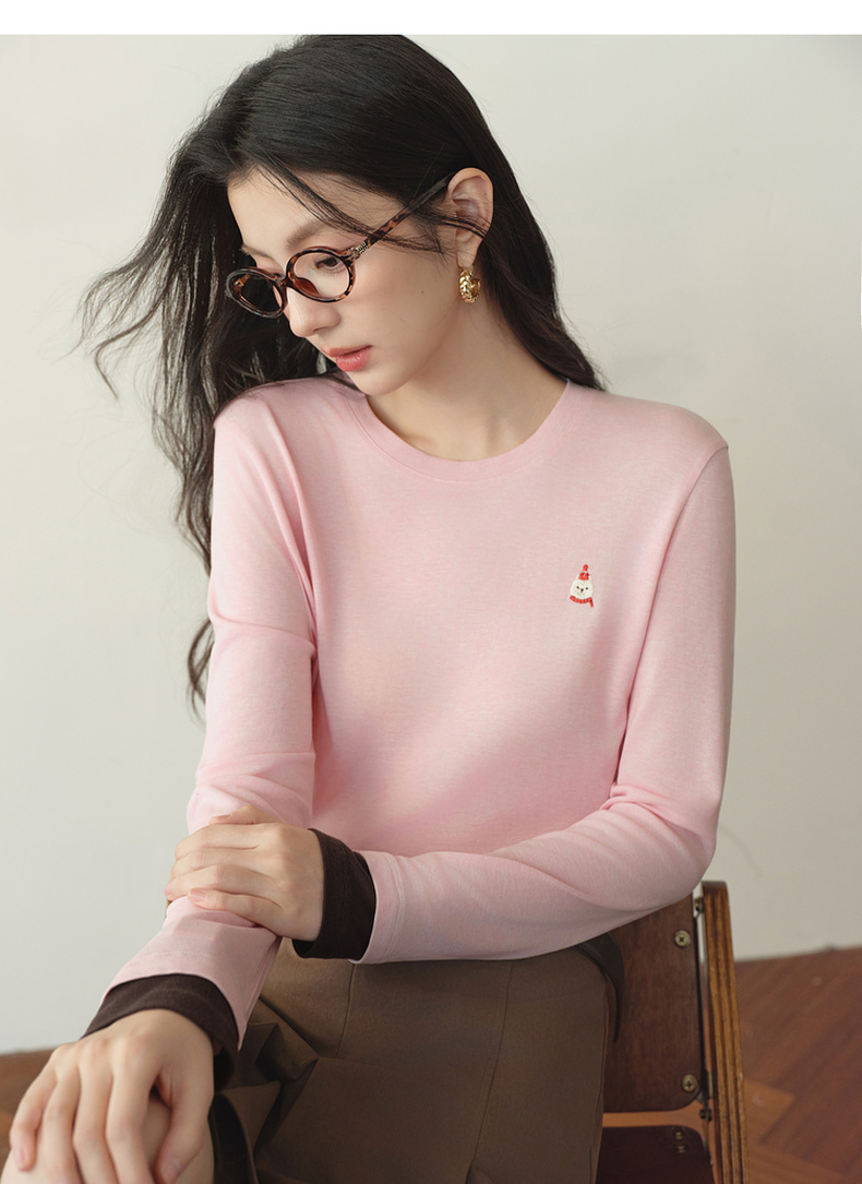 【严选】【奶皮T】诗凡黎天丝羊毛萌宠刺绣T恤2026春新款亲肤柔软内搭长袖7H2200341