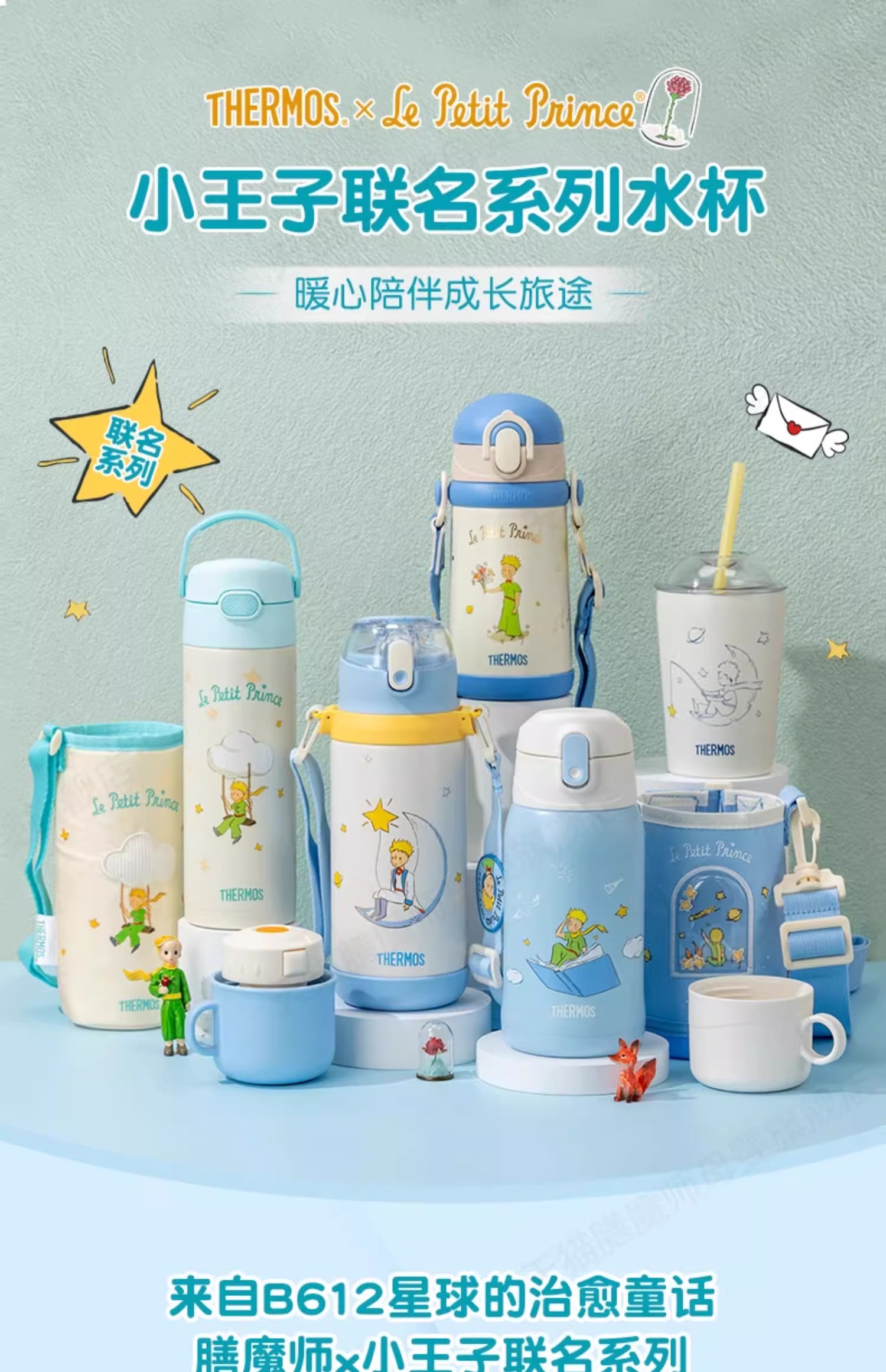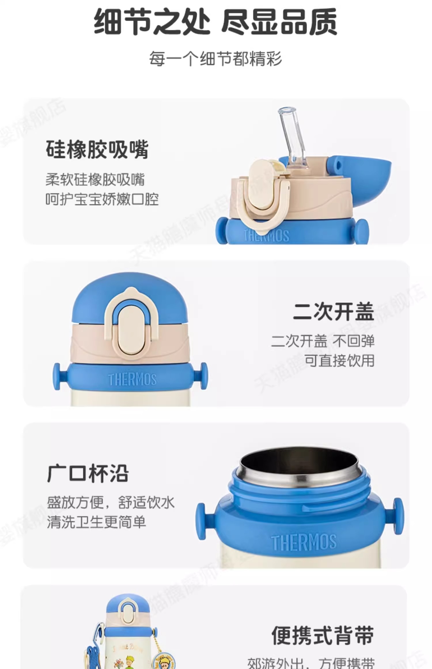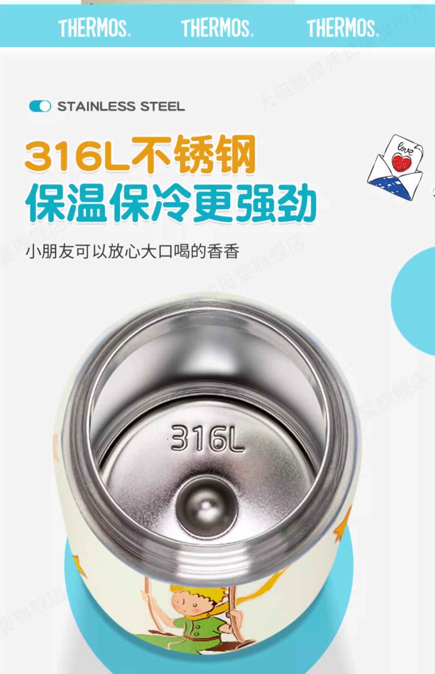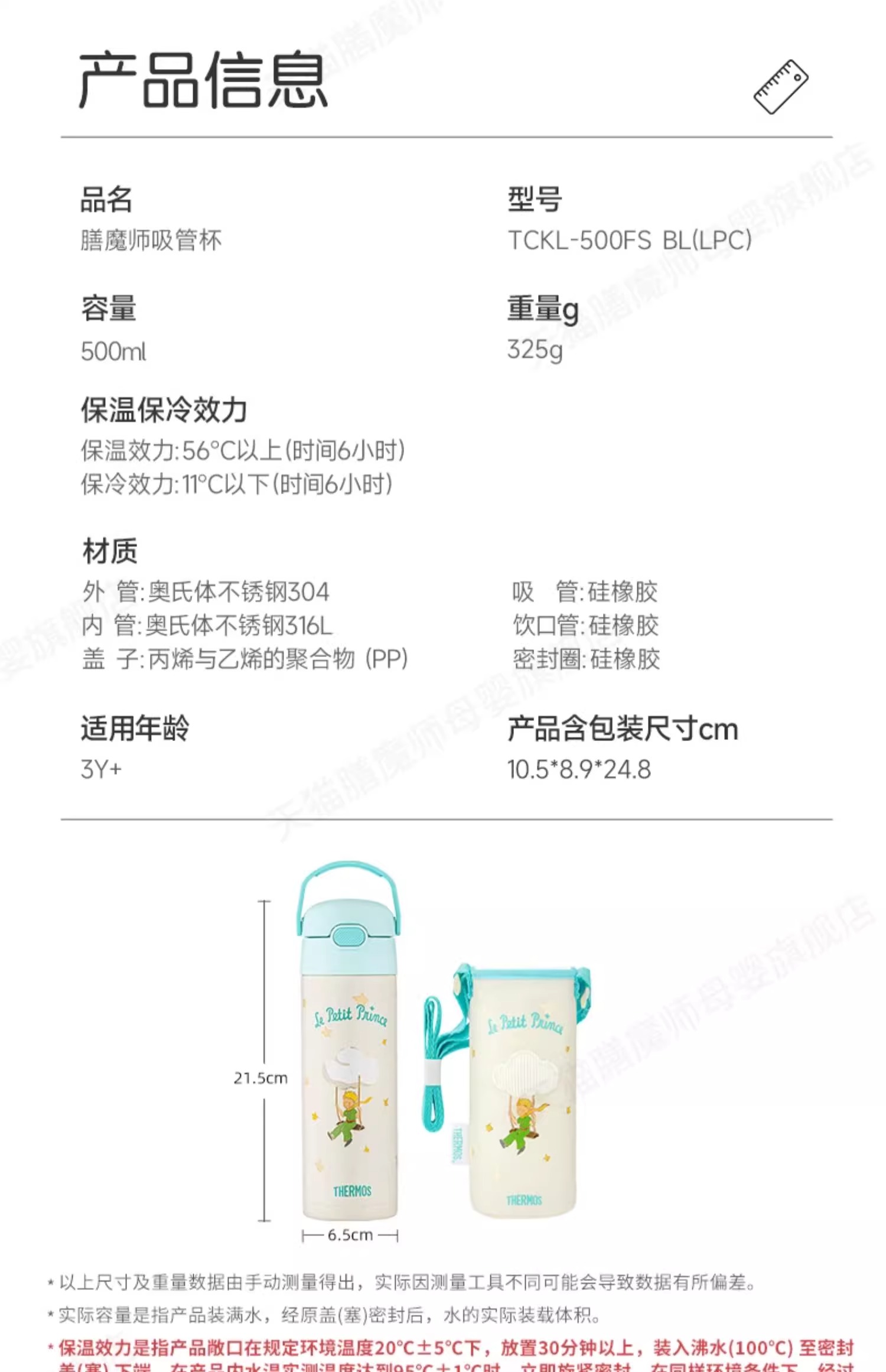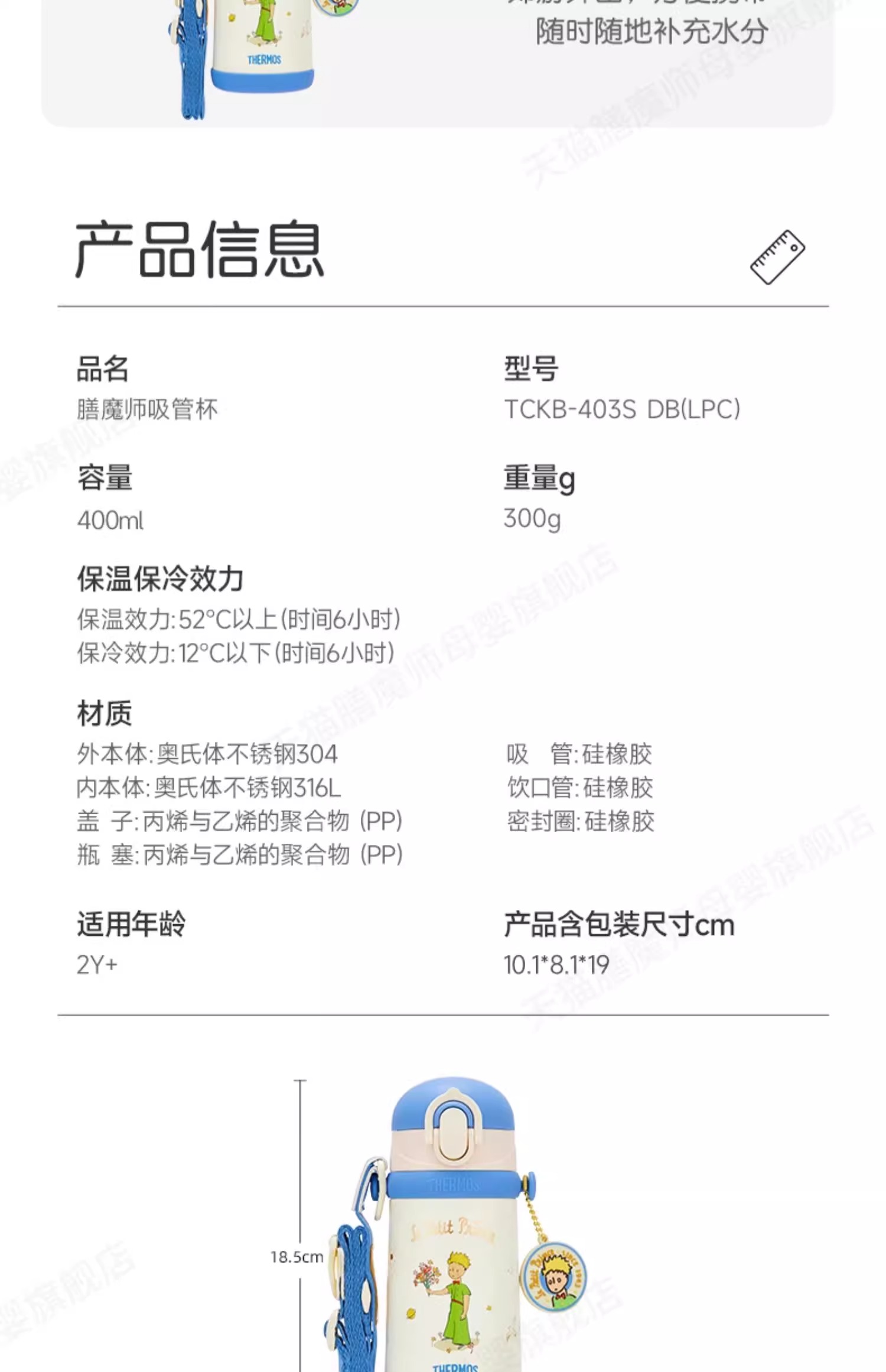膳魔师小王子系列儿童水杯宝宝吸管杯学生便携式保温杯500ml/TCKB-400S DB(LPC)