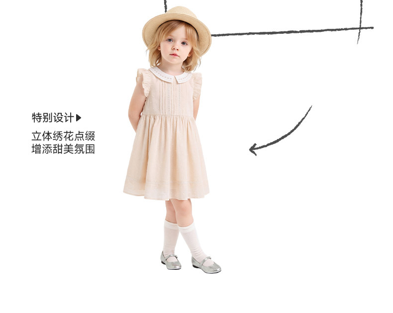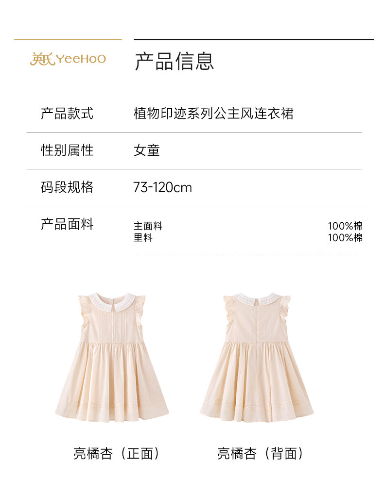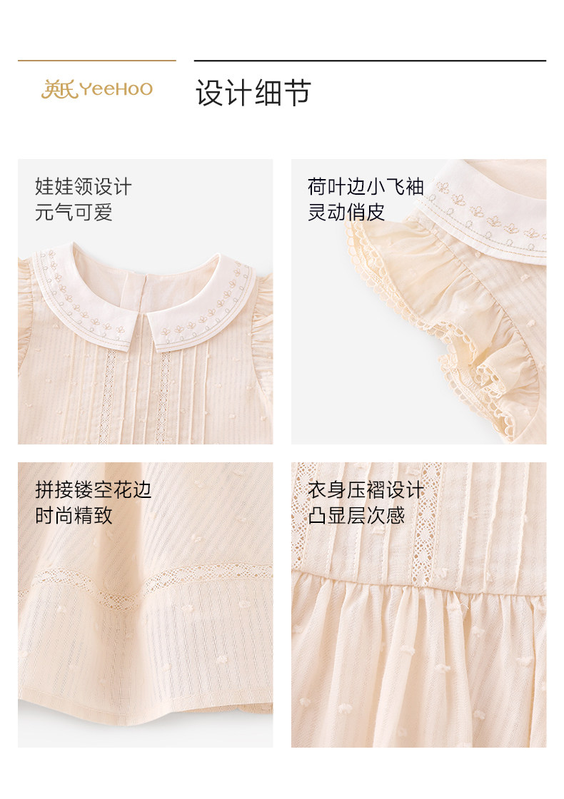 英氏女童连衣裙夏季新款女孩背心裙甜美透气法式裙子YRLCJ2S028A