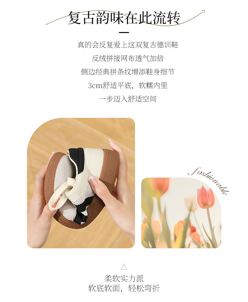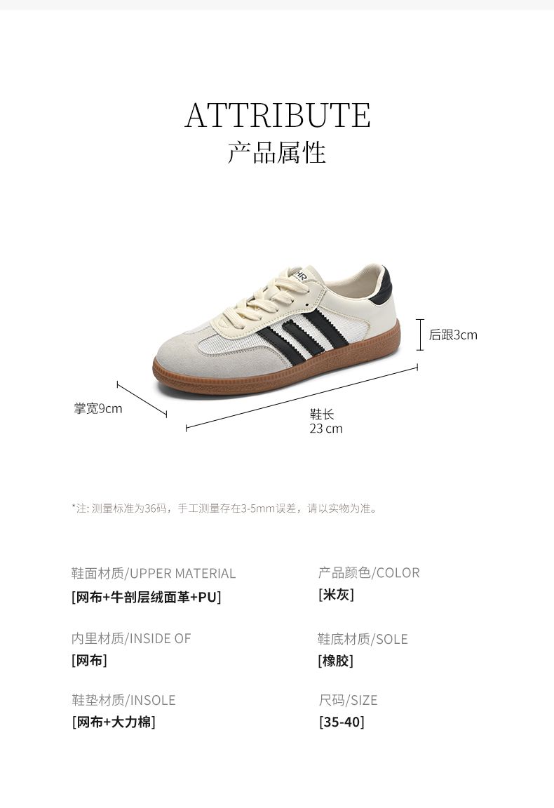 ZHR拼接德训鞋女2023新款透气百搭网面休闲鞋ins时尚复古板鞋