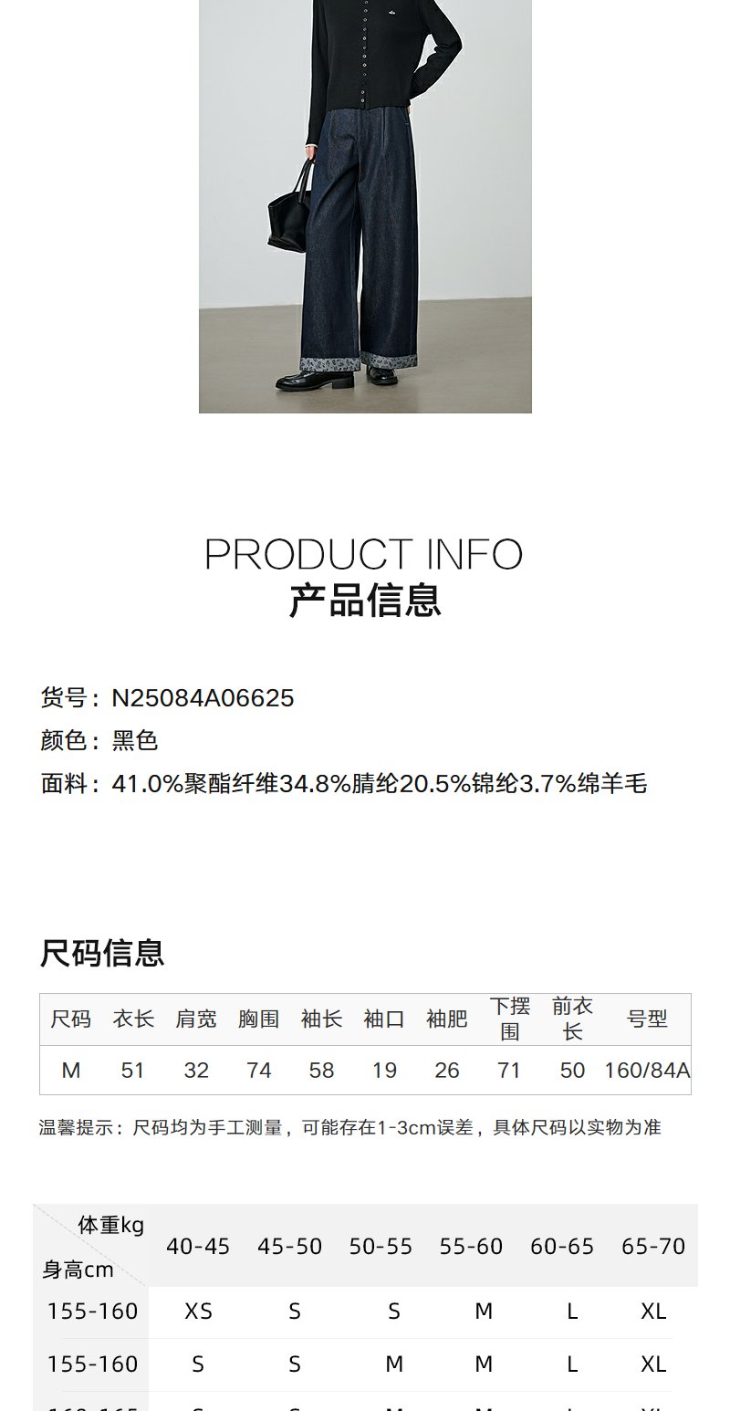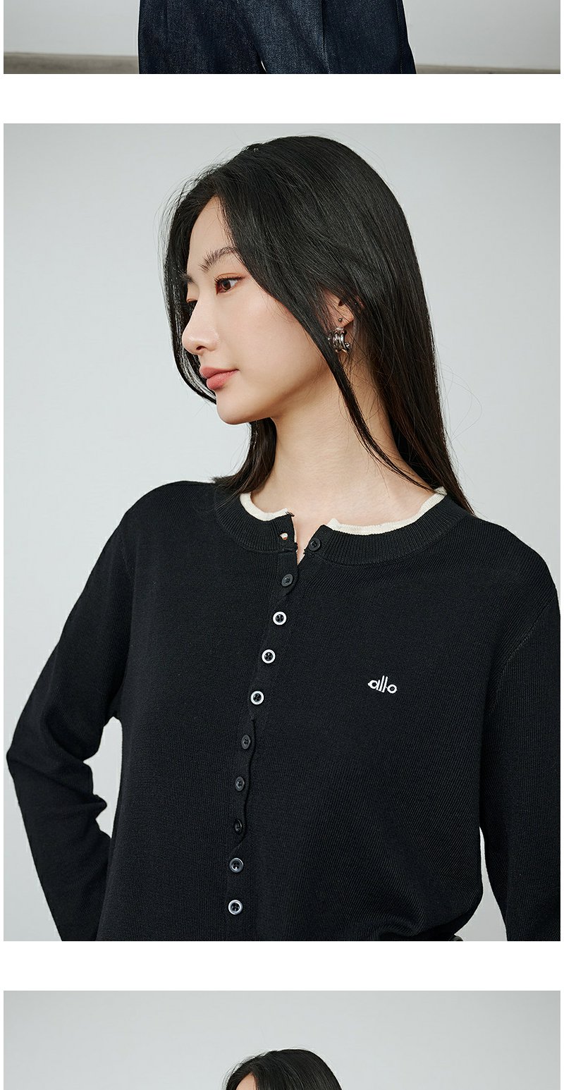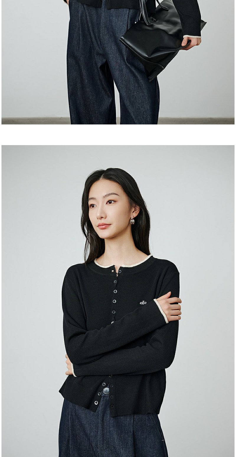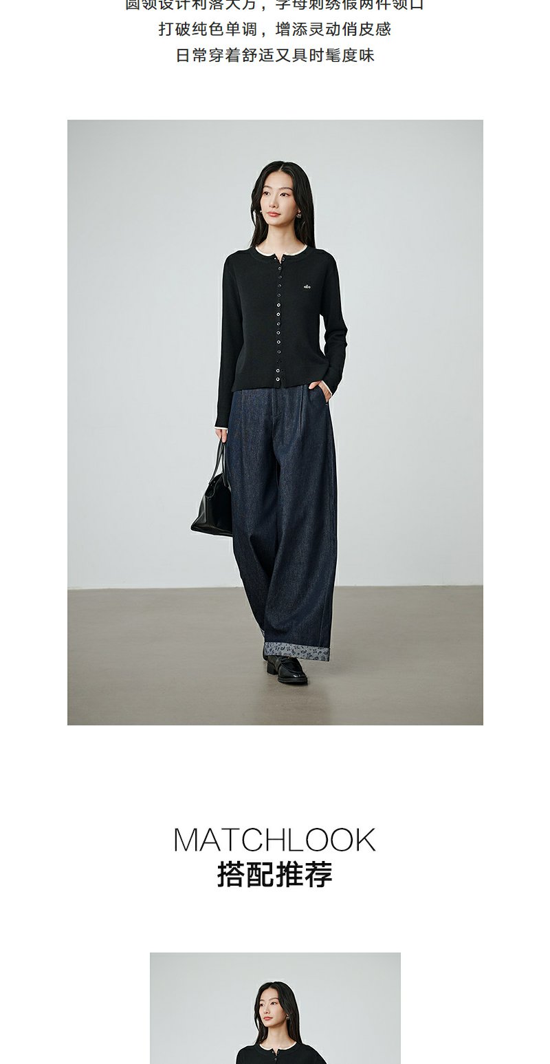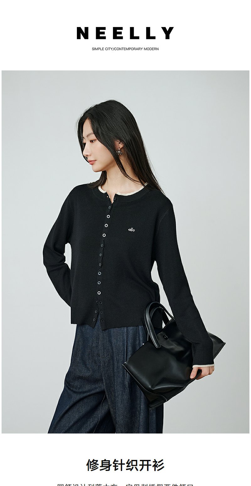NEELLY纳俪商场同款秋季新款圆领俏皮针织开衫女时尚假两件上衣N25084A06625