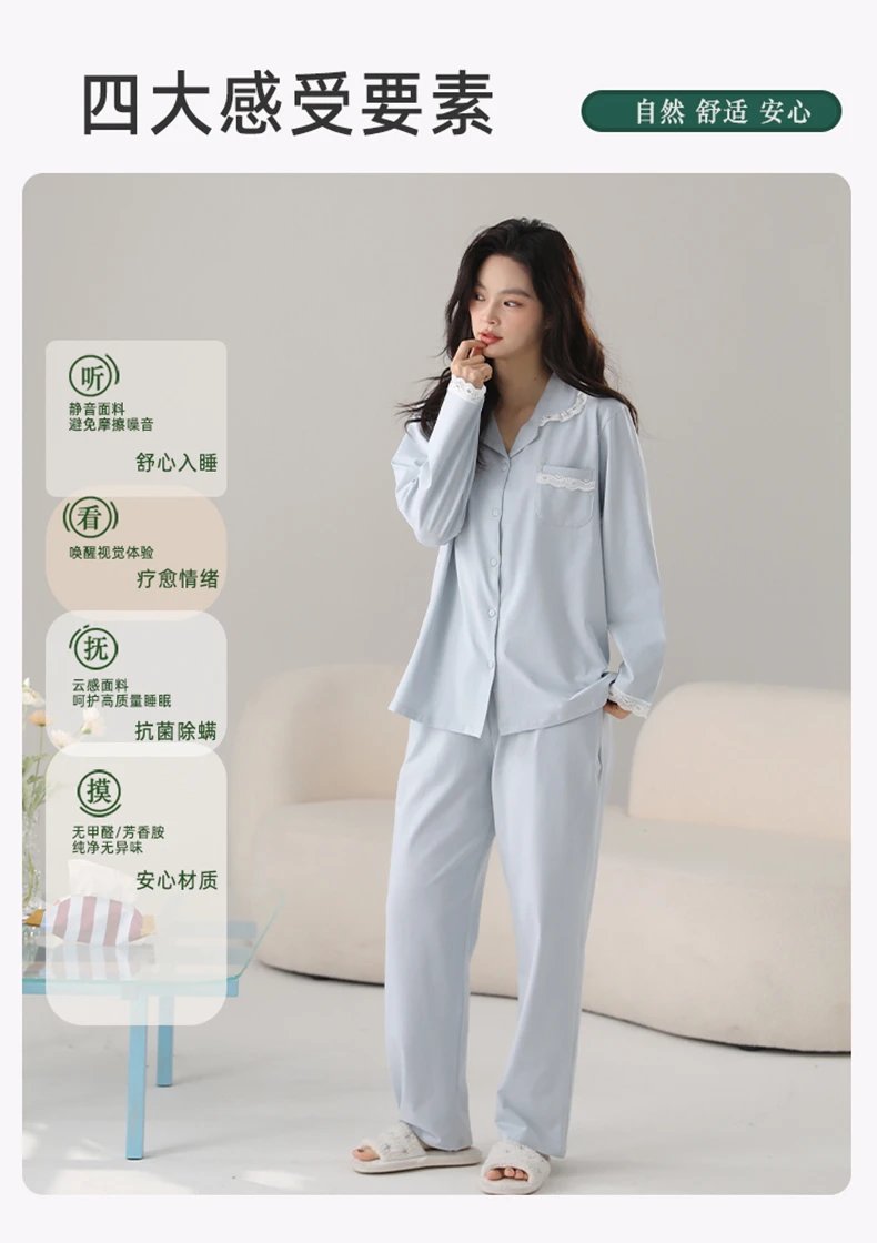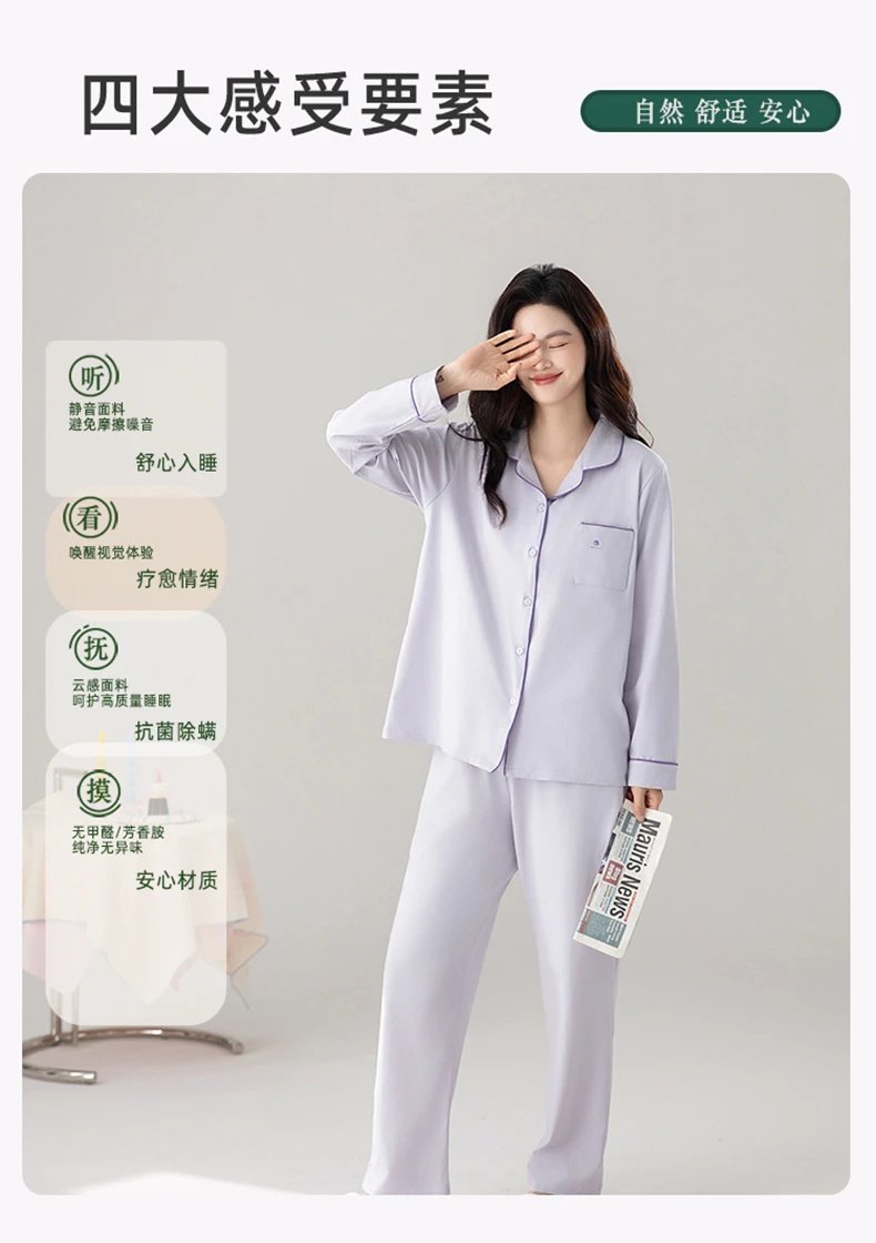 线下实体版【品质好货】 女士软弹纯棉家居服睡衣,长袖+长裤