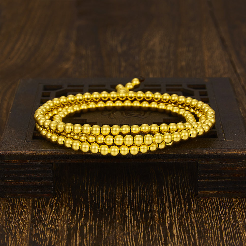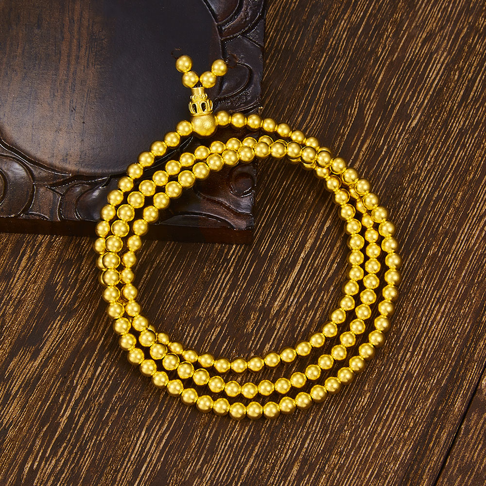 【限时克减150元】足金999.9 古法葫芦圆珠(约3.7mm)三圈手串(周长约51-52cm)(GFSCW00014)补差价)预售产品下单后不退款不退货不换货不补差价