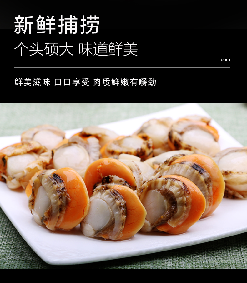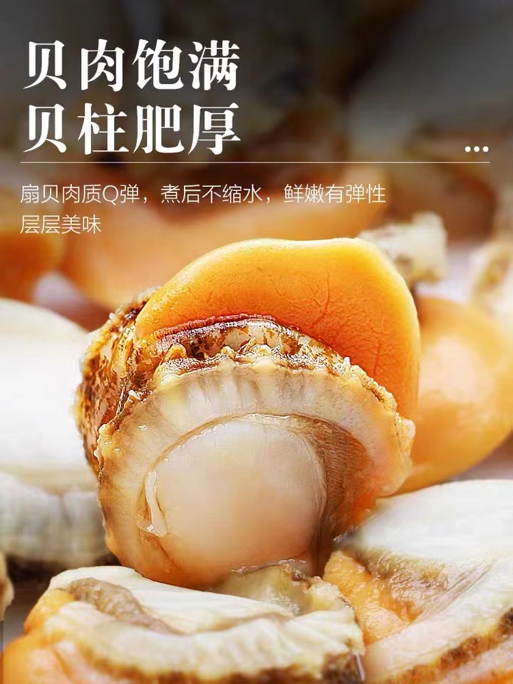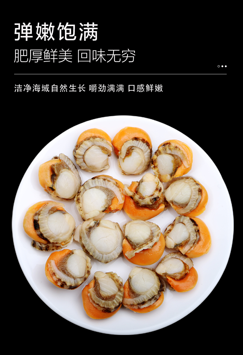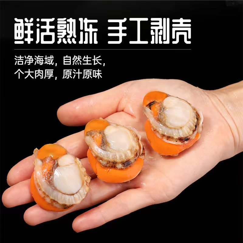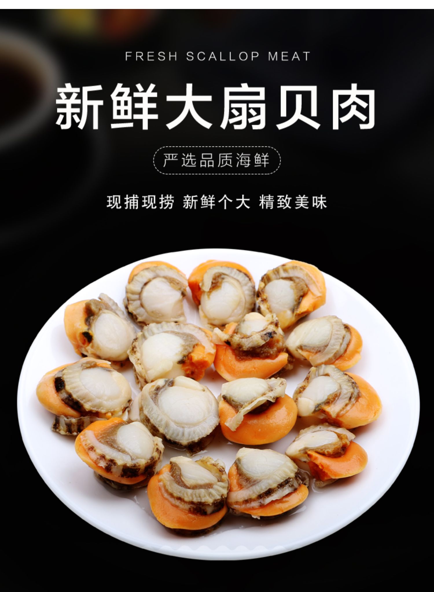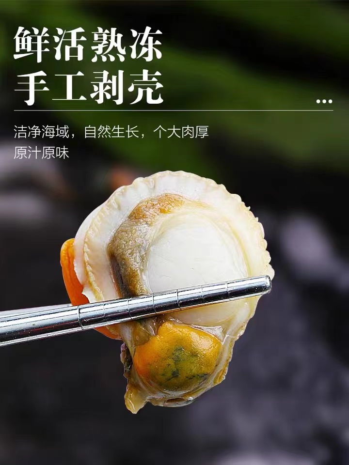 大连长海县福字号鲜活熟冻扇贝肉200g/袋,肉质肥厚,不缩水,人工筛选,去脏无沙,顺丰全国包邮