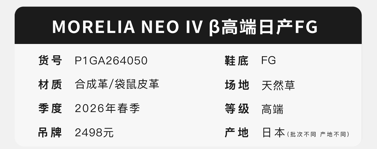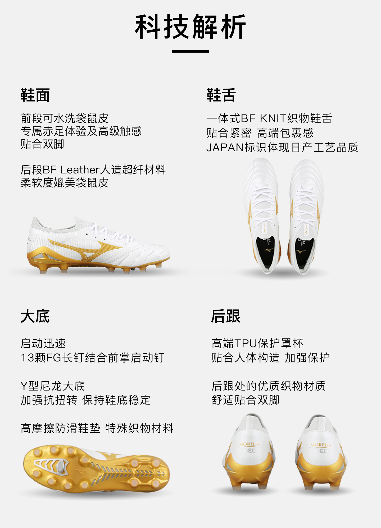 小李子Mizuno美津浓莫雷拉Morelia Neo 4 高端FG长钉成人袋鼠皮足球鞋男