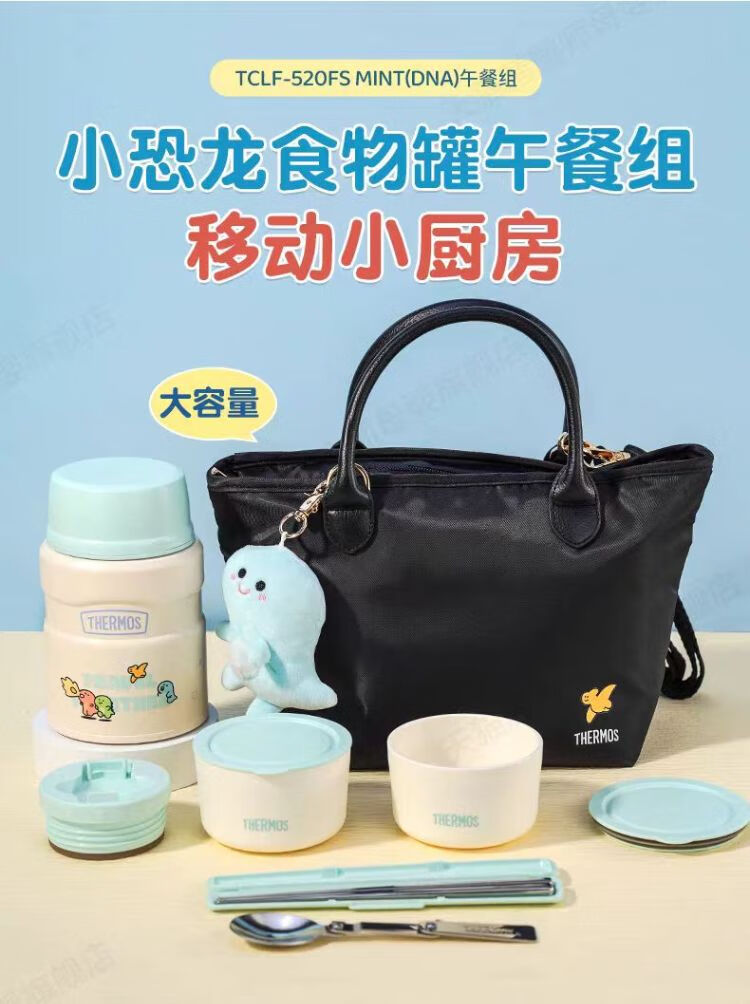 膳魔师小恐龙的美好日常主题高真空不锈钢食物罐午餐组蓝色520ml