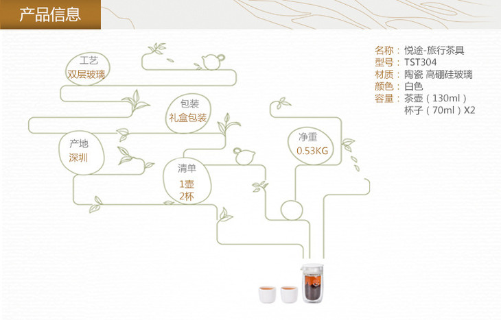 原初格物悦途旅行茶具130ML+70MLX2/TST304便携泡茶杯子礼品套装
