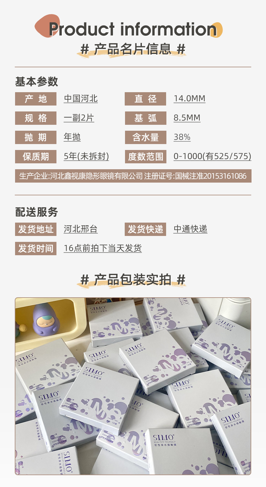 「6盒均¥44.6」SIMO新品日抛 补光灯 14.5mm大直径 │ 国产43%中含水量