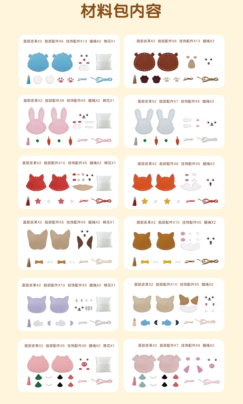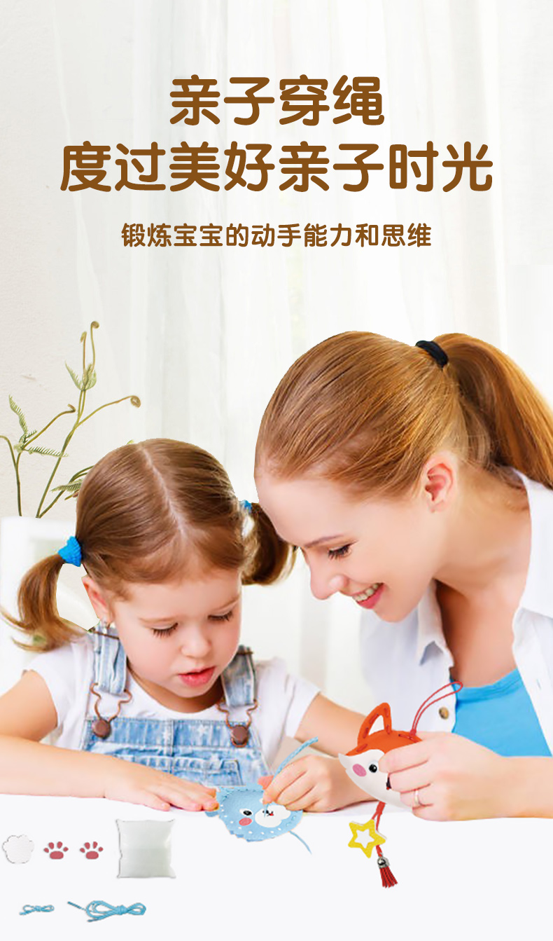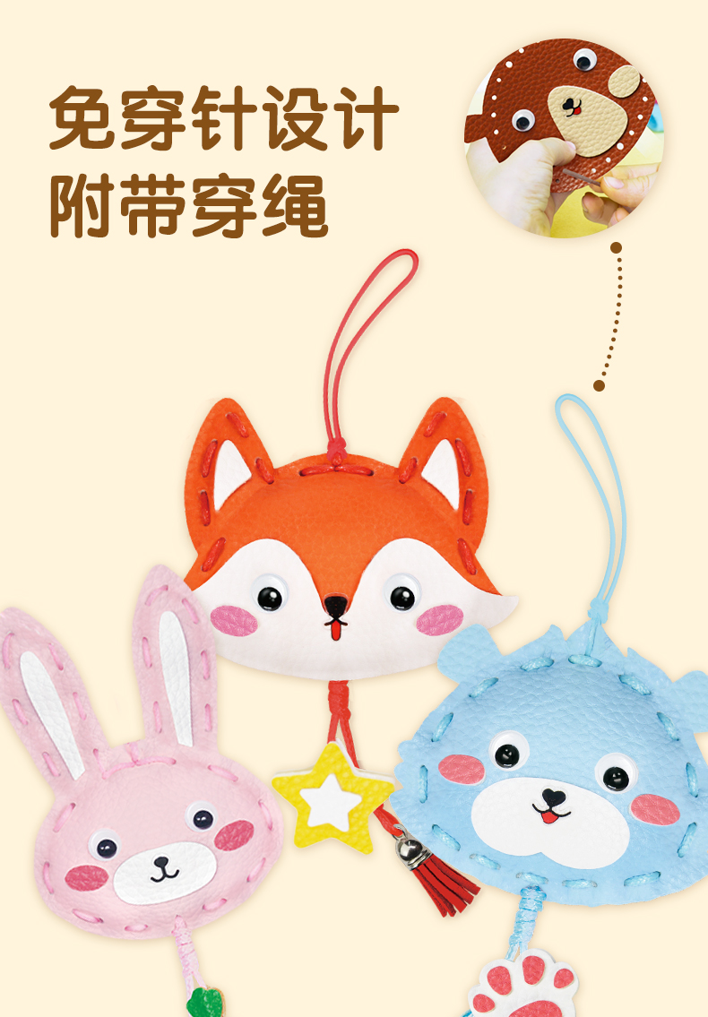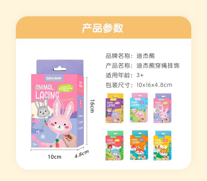 迪杰熊新品趣味动物穿绳儿童手工玩具小挂件