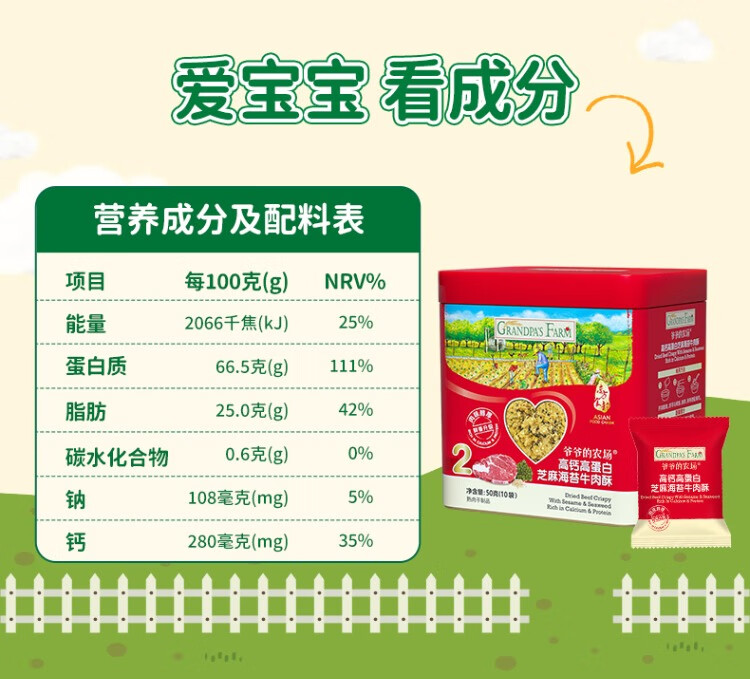 爷爷的农场芝麻海苔牛肉酥50g/盒