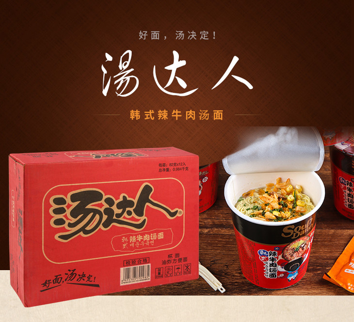 G105汤达人|韩式辣牛肉汤面泡面桶装 82g/杯