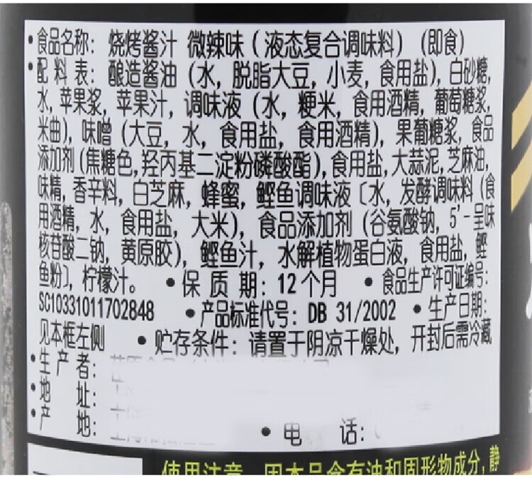 荏原烧烤酱汁微辣300g/瓶