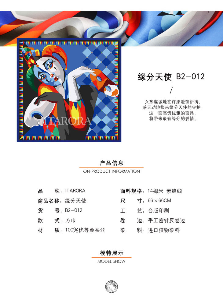 奥罗拉桑蚕丝巾/缘分天使/66*66CM/B2-010/花色