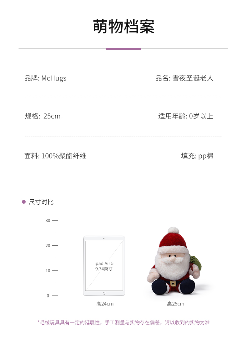MChugs 雪夜圣诞老人 圣诞节雪夜圣诞老人玩偶毛绒娃娃玩具摆件生日礼物公仔