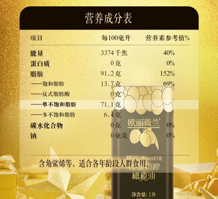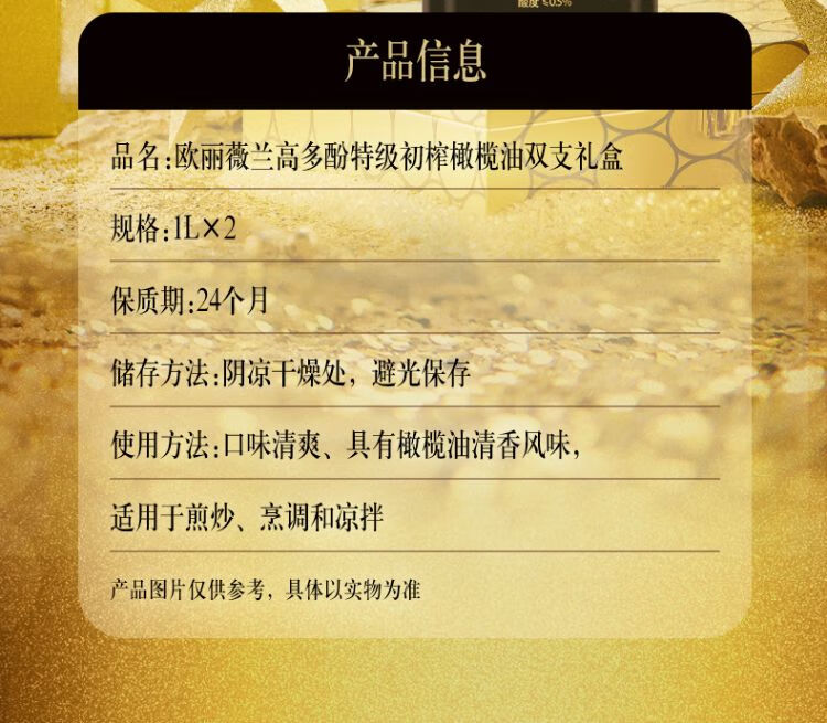 欧丽薇兰高多酚特级初榨橄榄油1L*2铁罐礼盒