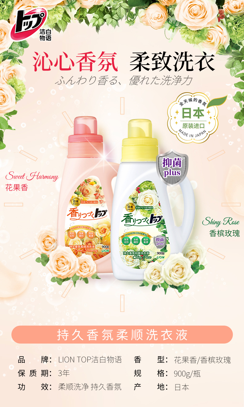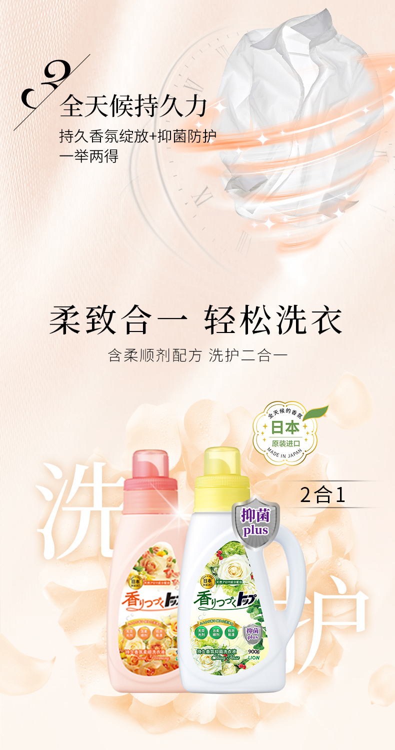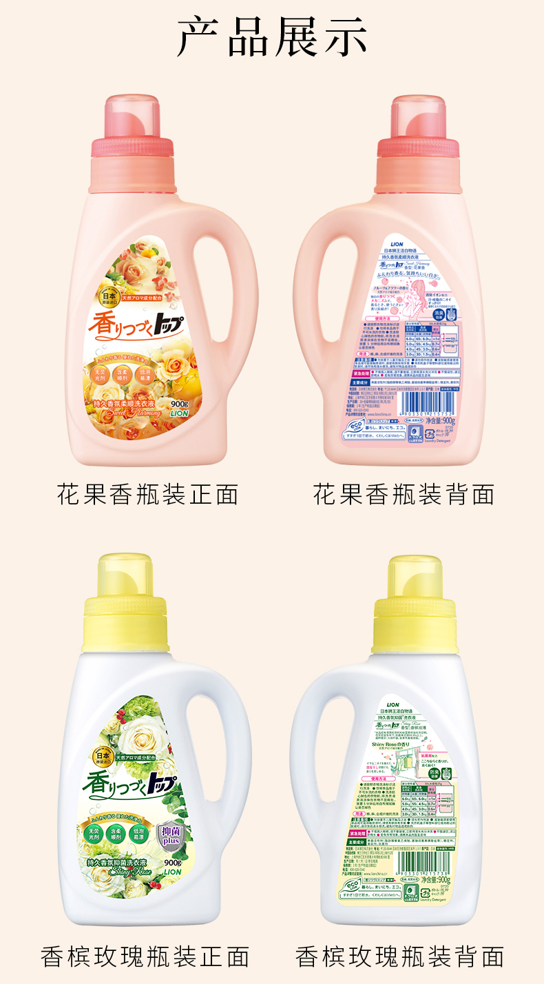 【已下架】积分换购 | 狮王 TOP持久香氛留香柔顺洗衣液900g*4瓶(不支持无理由退换)[福利品]